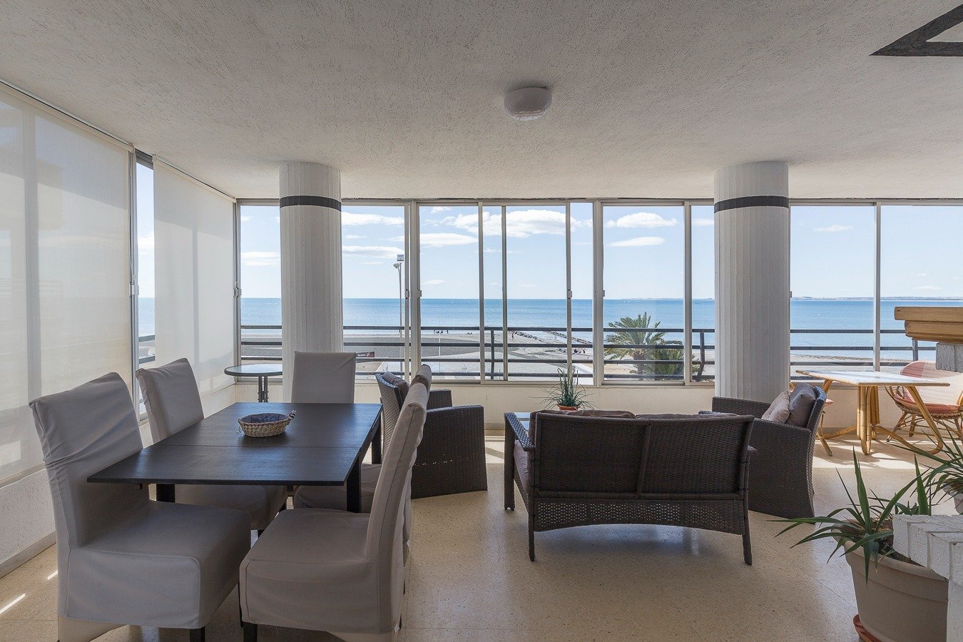 Apartamento en alquiler para todo el año, vivienda en primerísima línea de playa con vistas frontales al mar, urbanización con piscina, ascensor y aparcamiento rotativo.. Este apartamento tan exclusivo consta de salón comedor, gran terraza esquina con preciosas vistas al mar y a la playa, 3 dormitorios, cocina luminosa e independiente, 1 baño, toda la vivienda es exterior. Equipado.. . Precio mensual para contrato con duración DE 1 AÑO MÍNIMO MÁS LAS PRORROGAS ESTABLECIDAS POR LA LEY DE ARRENDAMIENTOS URBANOS, uso de vivienda. Suministros y servicios a cargo del arrendatario. Operación sujeta a calificación financiera previa del inquilino y su aceptación por el arrendador. Oferta no vinculante, consultar condiciones y disponibilidad.