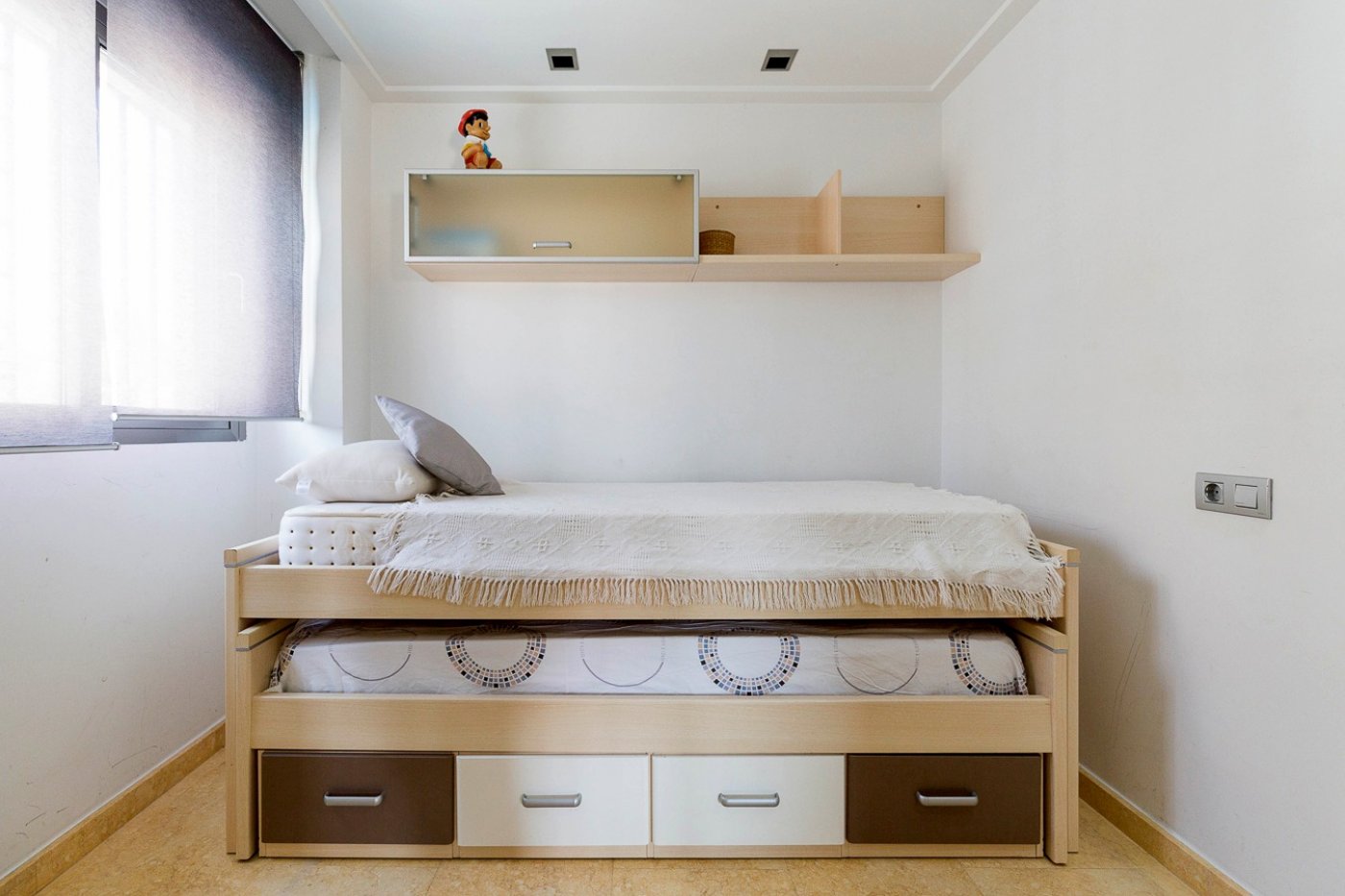 Alquiler apartamento ubicado a pocos metros de Playa Lissa, con todas las comodidades de una urbanización. En la misma calle se encuentran la mayor parte de los servicios de la zona: farmacias, supermercados, bares, pequeñas tiendas abiertas todo el año, estanco, etc.. Así mismo tiene acceso rapidísimo a la N-332 para dirigirnos hacia aeropuerto, Alicante, Elche, Torrevieja.. . La urbanización fue construida en el 2007, dispone de ascensor que comunica las viviendas con la planta de garaje, además recinto cerrado con piscina ideal para refrescarse. Vivienda con AA/CC (frío-calor) centralizado, lavadora-secadora, persianas eléctricas, suelo de mármol, toldos, puertas de madera de roble, pre instalación ósmosis.. . Dispone de 2 dormitorios dobles, salón, cocina oficce, terraza con vistas a la piscina, vivienda completamente exterior y luminosa.. . Precio mensual para contrato con duración de 1 año más las prorrogas establecidas por la ley de arrendamientos urbanos, uso de vivienda. . Operación sujeta a calificación financiera del inquilino y aceptación final del arrendador. . Oferta no vinculante, consultar condiciones..