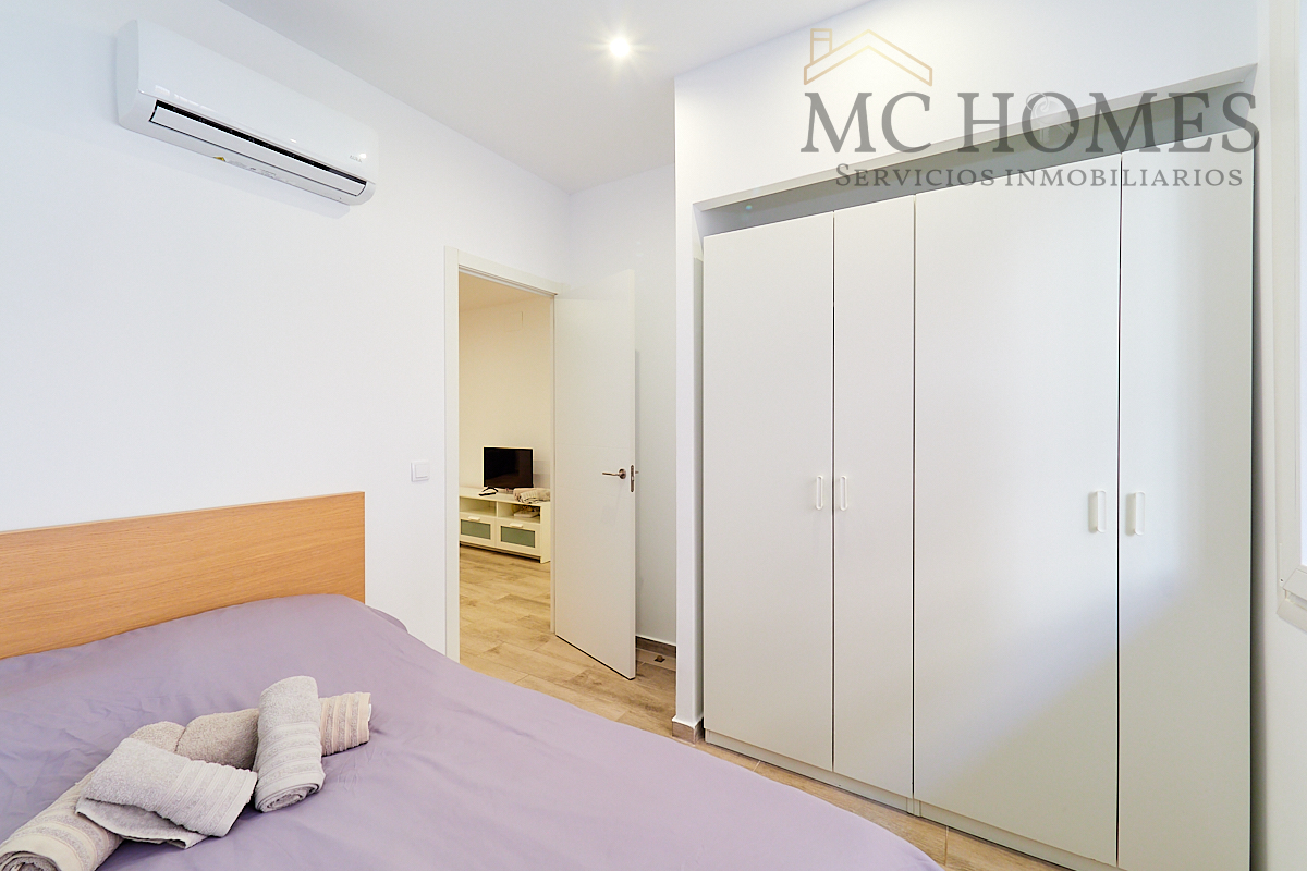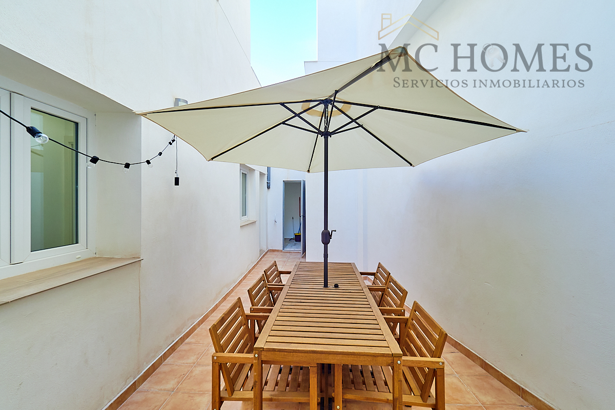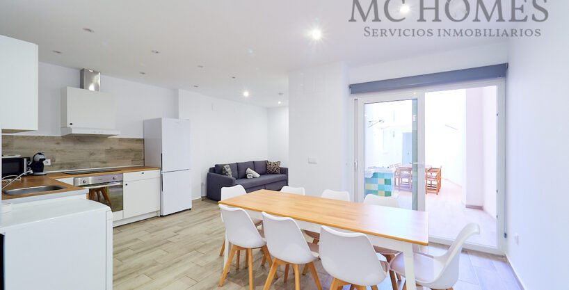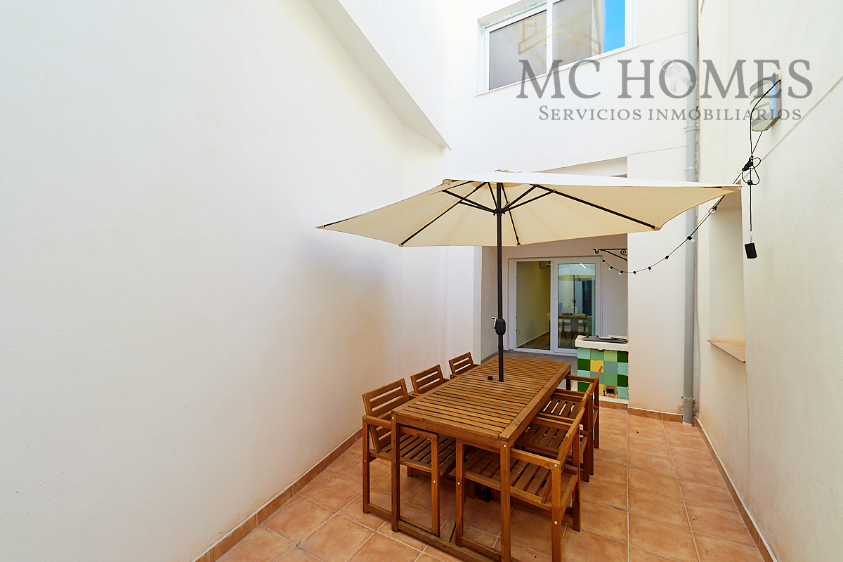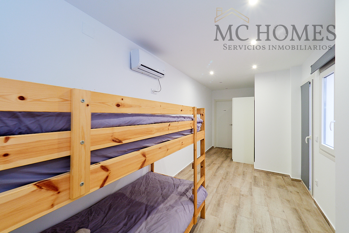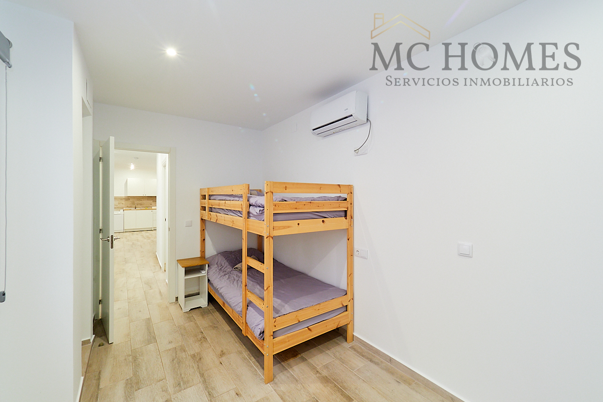 El piso cuenta con un patio interior que aporta luminosidad y frescura al ambiente. Además, está completamente amueblado y equipado con aire acondicionado tanto en el salón como en las habitaciones, garantizando un confort óptimo durante todo el año. Su orientación asegura una magnífica entrada de luz natural. Ubicado en planta Baja, a 100 metros de la playa este inmueble combina accesibilidad y funcionalidad.