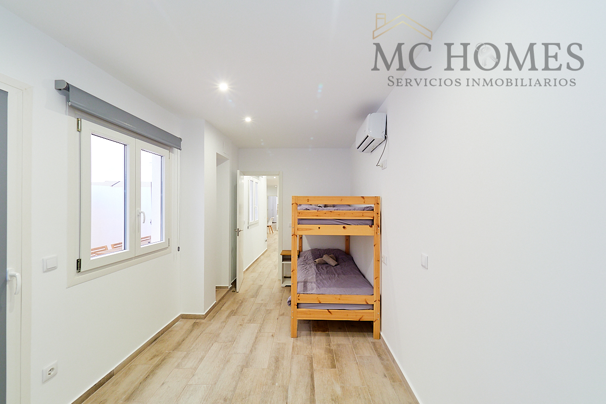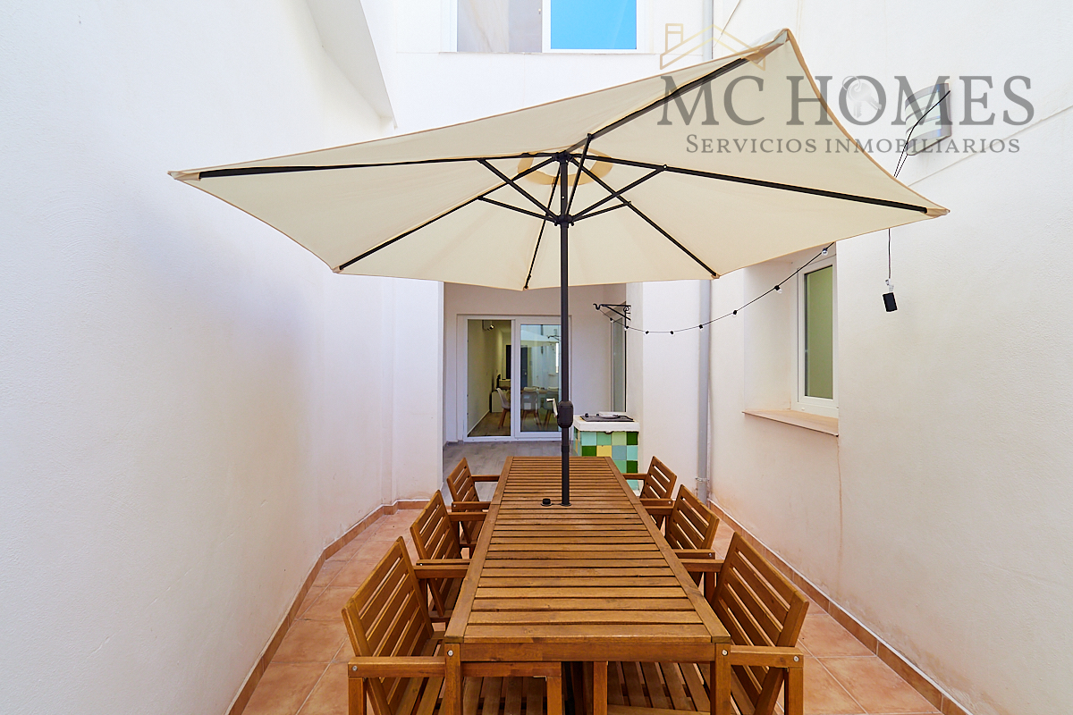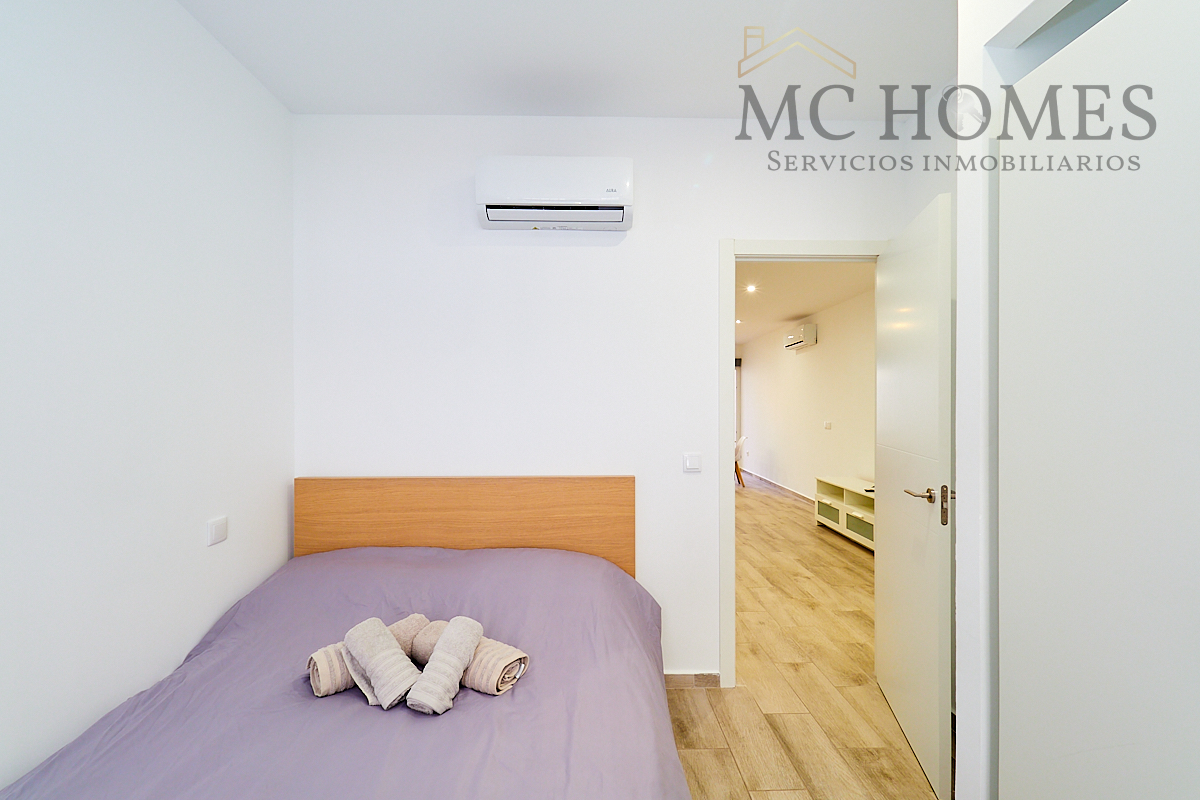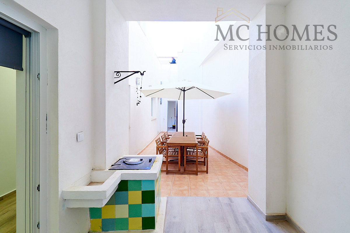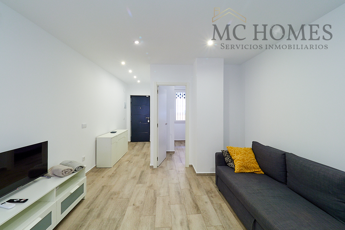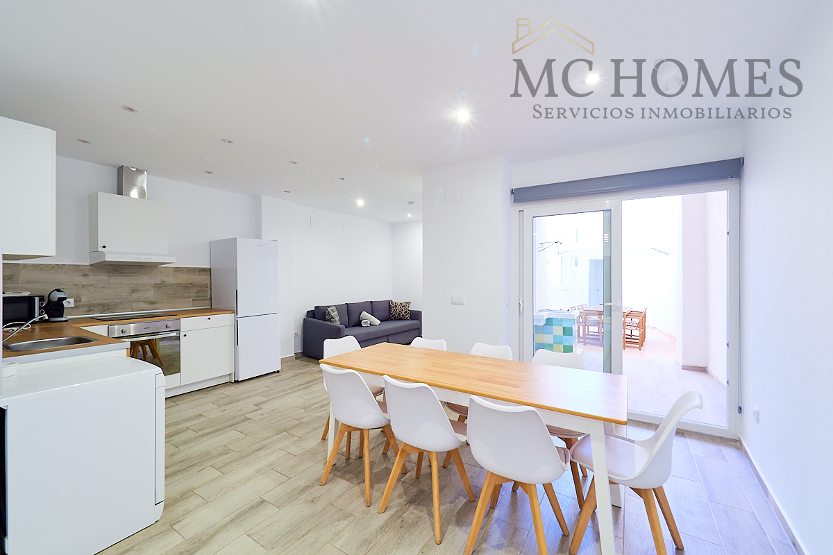 El piso cuenta con un patio interior que aporta luminosidad y frescura al ambiente. Además, está completamente amueblado y equipado con aire acondicionado tanto en el salón como en las habitaciones, garantizando un confort óptimo durante todo el año. Su orientación asegura una magnífica entrada de luz natural. Ubicado en planta Baja, a 100 metros de la playa este inmueble combina accesibilidad y funcionalidad.