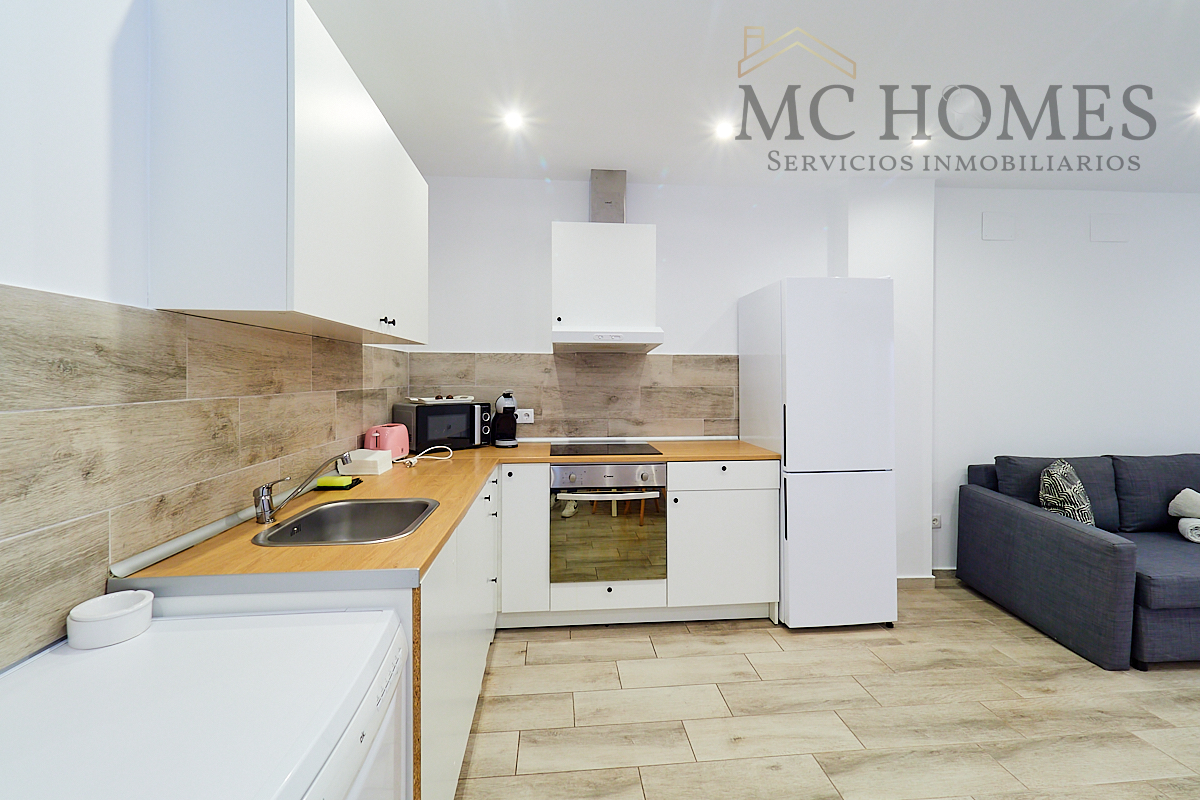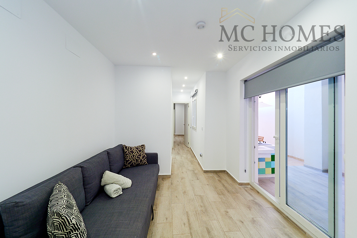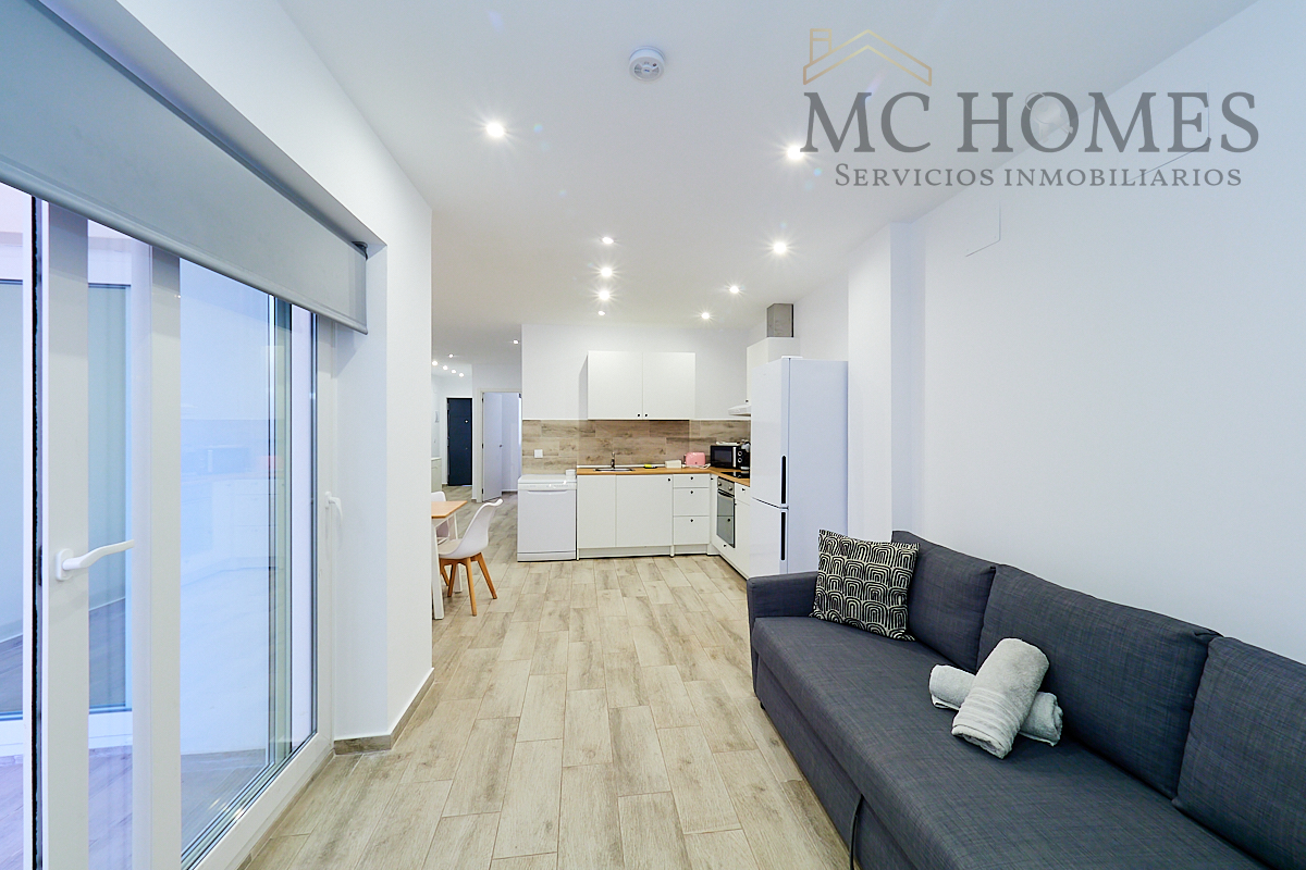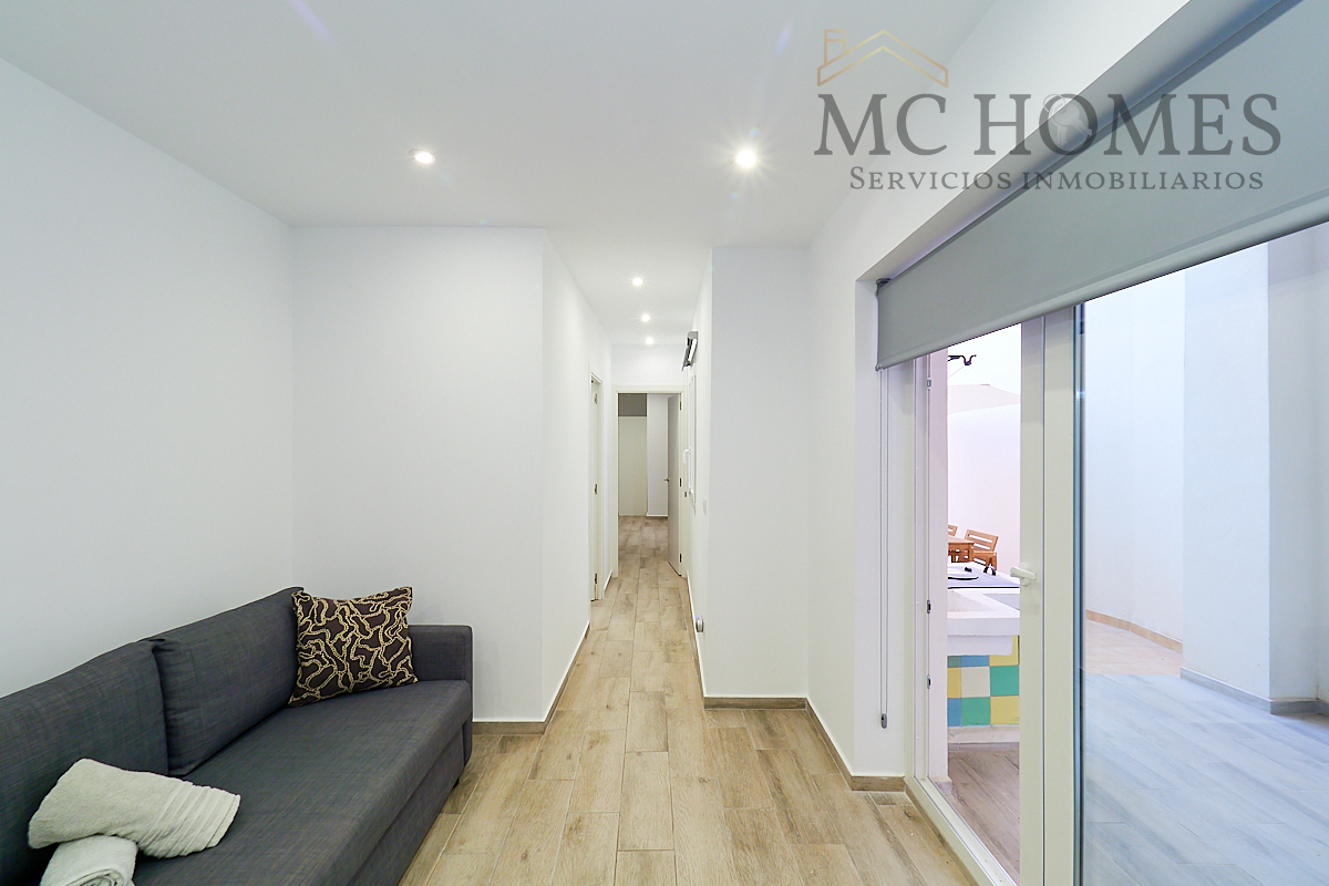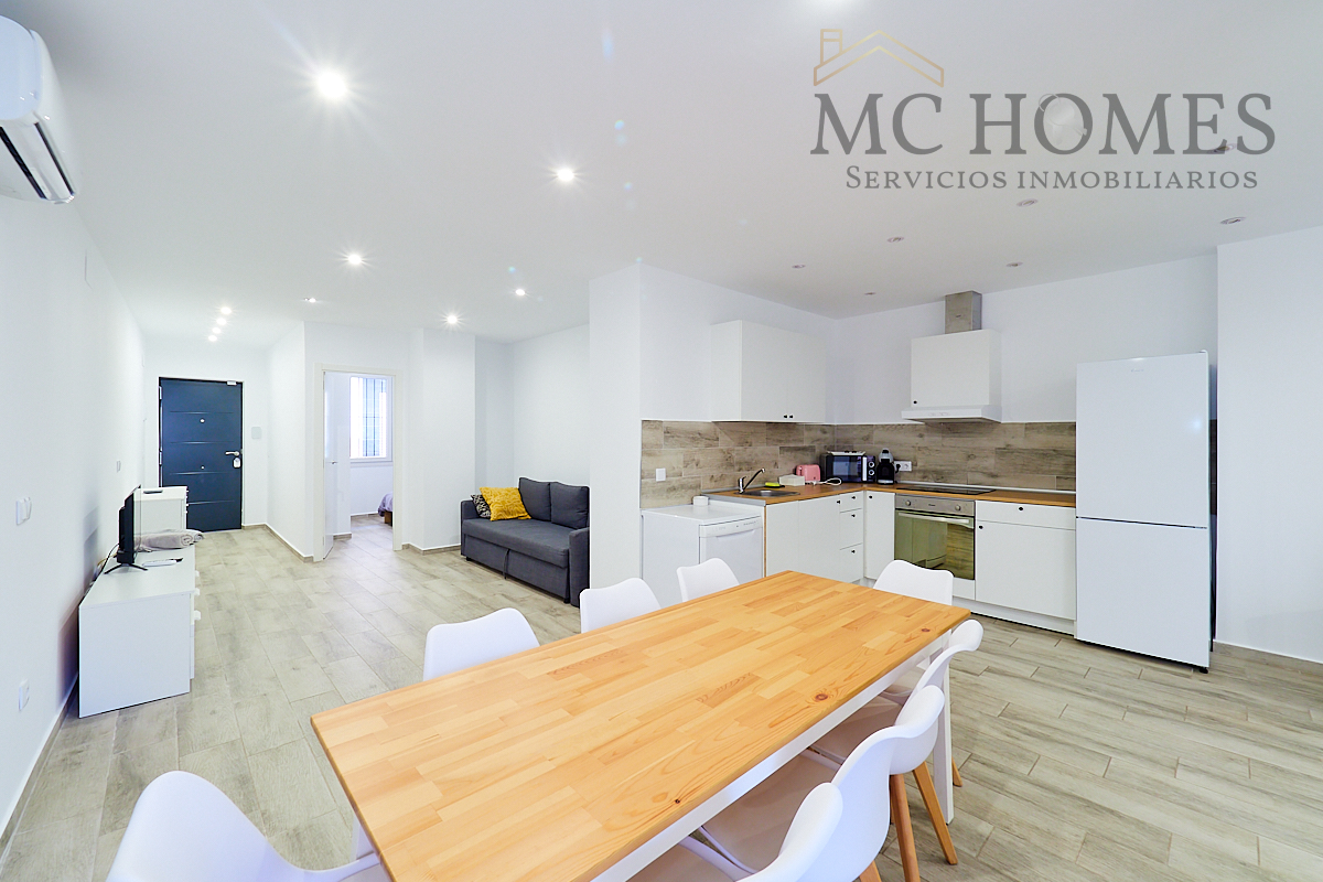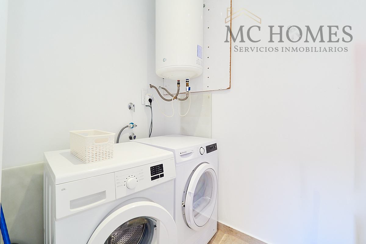 El piso cuenta con un patio interior que aporta luminosidad y frescura al ambiente. Además, está completamente amueblado y equipado con aire acondicionado tanto en el salón como en las habitaciones, garantizando un confort óptimo durante todo el año. Su orientación asegura una magnífica entrada de luz natural. Ubicado en planta Baja, a 100 metros de la playa este inmueble combina accesibilidad y funcionalidad.