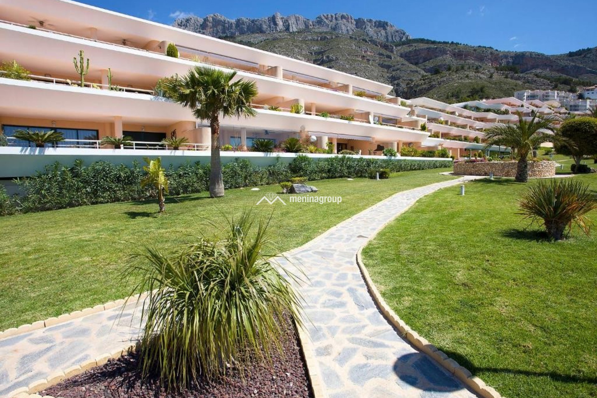 La urbanización tiene grandes jardines muy cuidados, dos zonas de piscina con vestuarios, ascensores, y en un entorno natural inigualable a dos pasos de Altea La Vella y todos sus servicios.