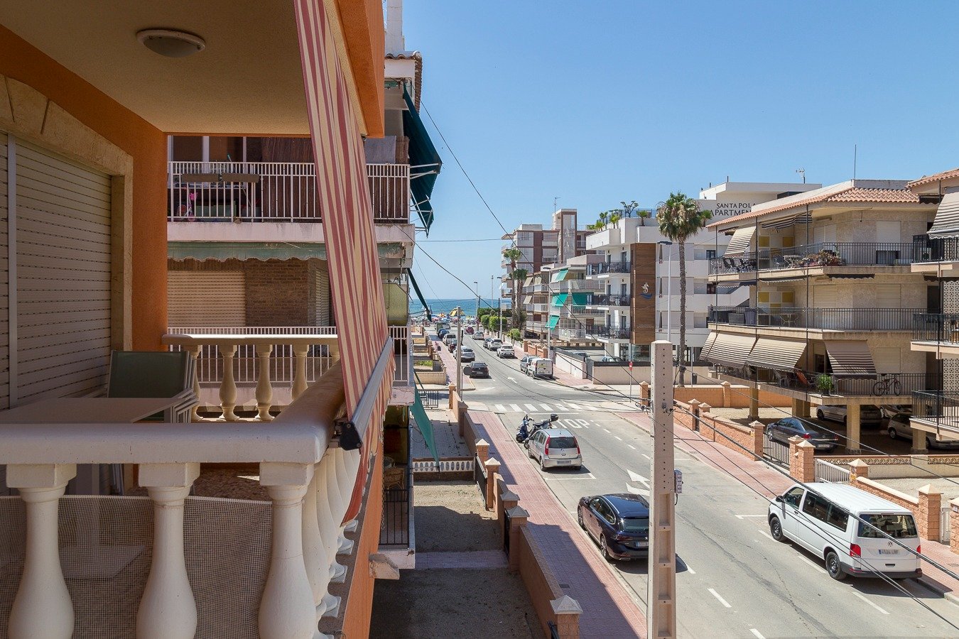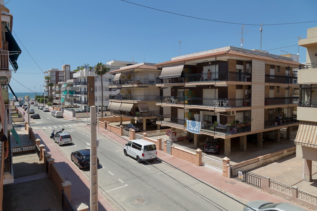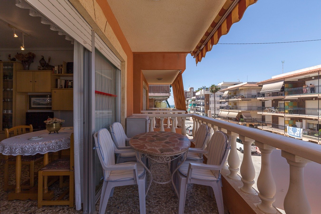 Se vende apartamento con excelente ubicación, a tan solo unas calles de todos los comercios y a 190 mt de la playa.. . Vistas al mar laterales! Edificio completamente rehabilitado.. . Consta de amplia terraza con toldo, vivienda completamente exterior, salón comedor y cocina con galería acristalada, 3 dormitorios y 1 baño exterior amplio con ducha, 2ª planta sin ascensor, aparcamiento asignado debajo del edificio y con duchas comunitarias. . Se vende completamente amueblado y con electrodomésticos, también horno, vitrocerámica y calentador eléctrico. Listo para disfrutarlo en pleno verano, zona tranquila pero cercana al casco urbano. Poquísimos gastos de comunidad al año.. . * Gastos de Notaría, Registro de la Propiedad e impuestos (ITPAJD, IVA) no incluidos en el precio.