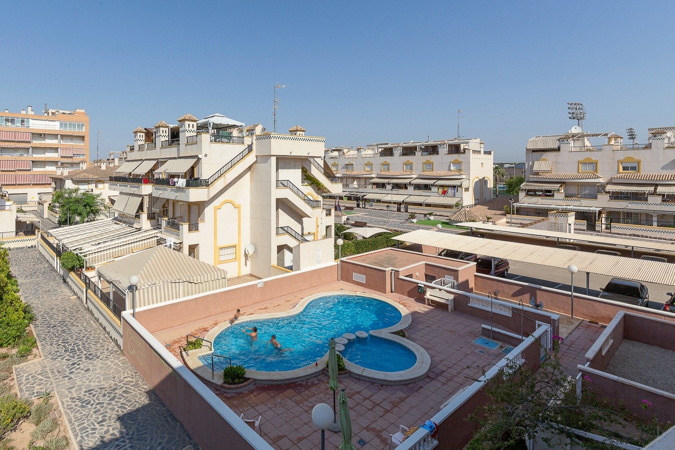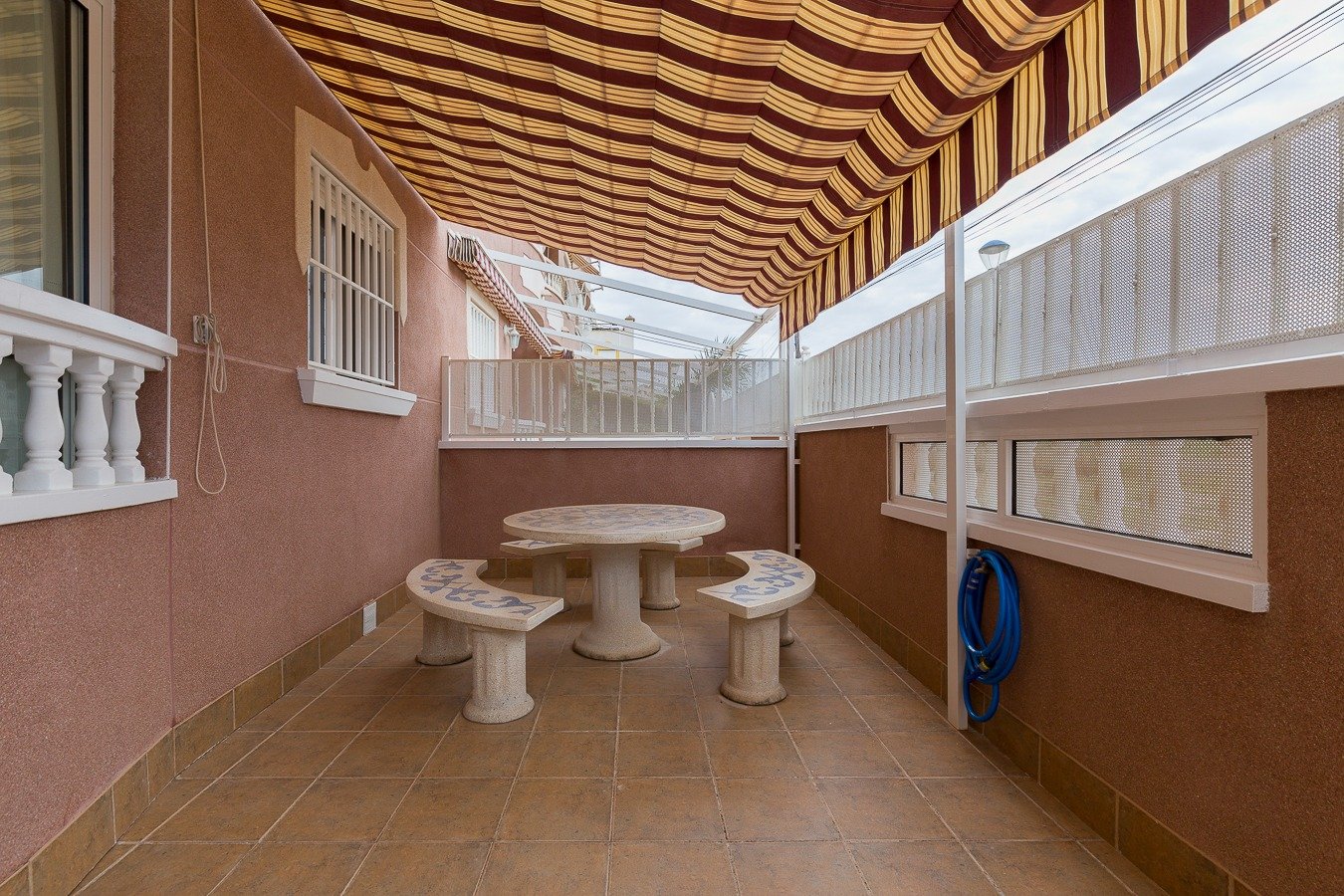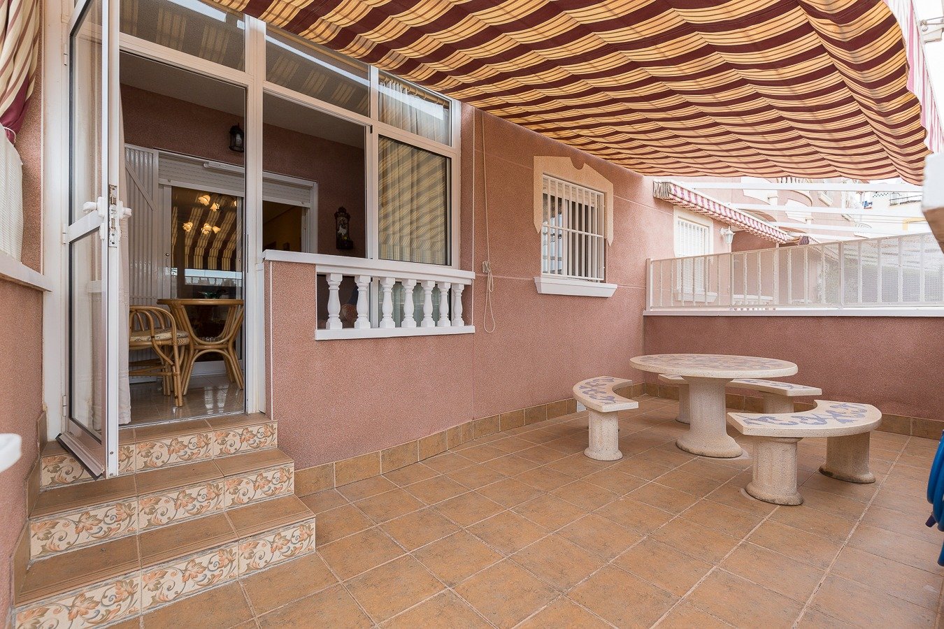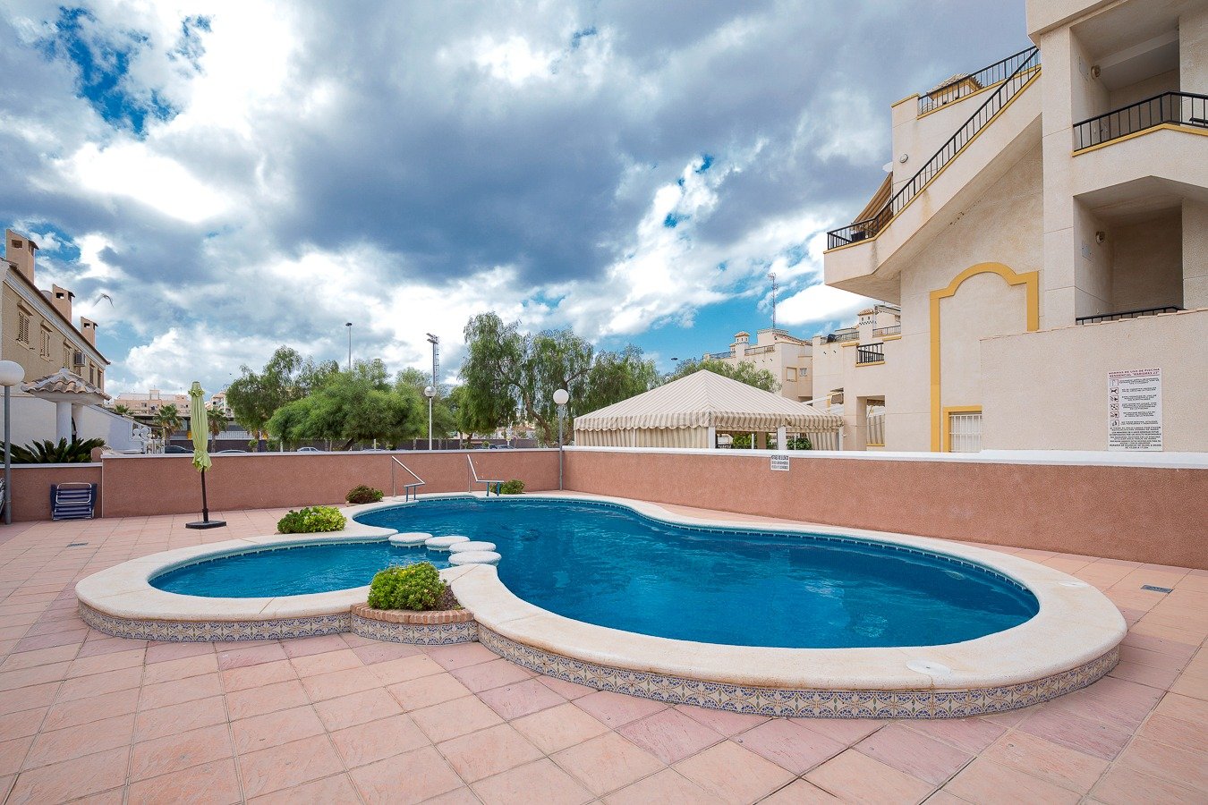 Lo tiene todo, perfecto estado, precioso bungalow de planta baja, se ubica en Gran Playa lindando con el club náutico y a 400 mt del caso urbano y todos los servicios, mercadillo, estación de autobuses, zona de ocio, centros médicos, distancia a la playa 600 mt.. . Este impecable bungalow de planta baja se encuentra en un estado excelente, impecable, además situado dentro de una urbanización con piscina comunitaria pero además también entrada completamente independiente por la segunda puerta, la propiedad se vende con plaza de aparcamiento exterior techado. . . Consta de salón comedor, cocina independiente con patio, 2 dormitorios, 1 baño con ducha y mampara, terraza principal de 10 m2, se vende con todos sus muebles y electrodomésticos semi-nuevos algunos de ellos el resto con muy poco uso, mosquiteras, aa/ cc bomba frío y calor. Los muebles que presenta el bungalow de planta baja son de calidad y un muy buen estado, colchones, etc. Vistas despejadas completamente sin vecinos enfrente.. . * Gastos de Notaría, Registro de la Propiedad e impuestos (ITPAJD, IVA) no incluidos en el precio.