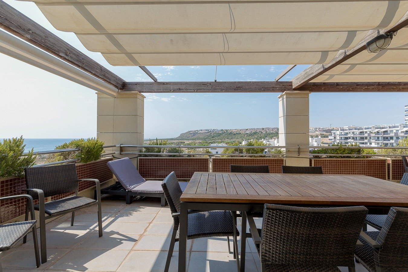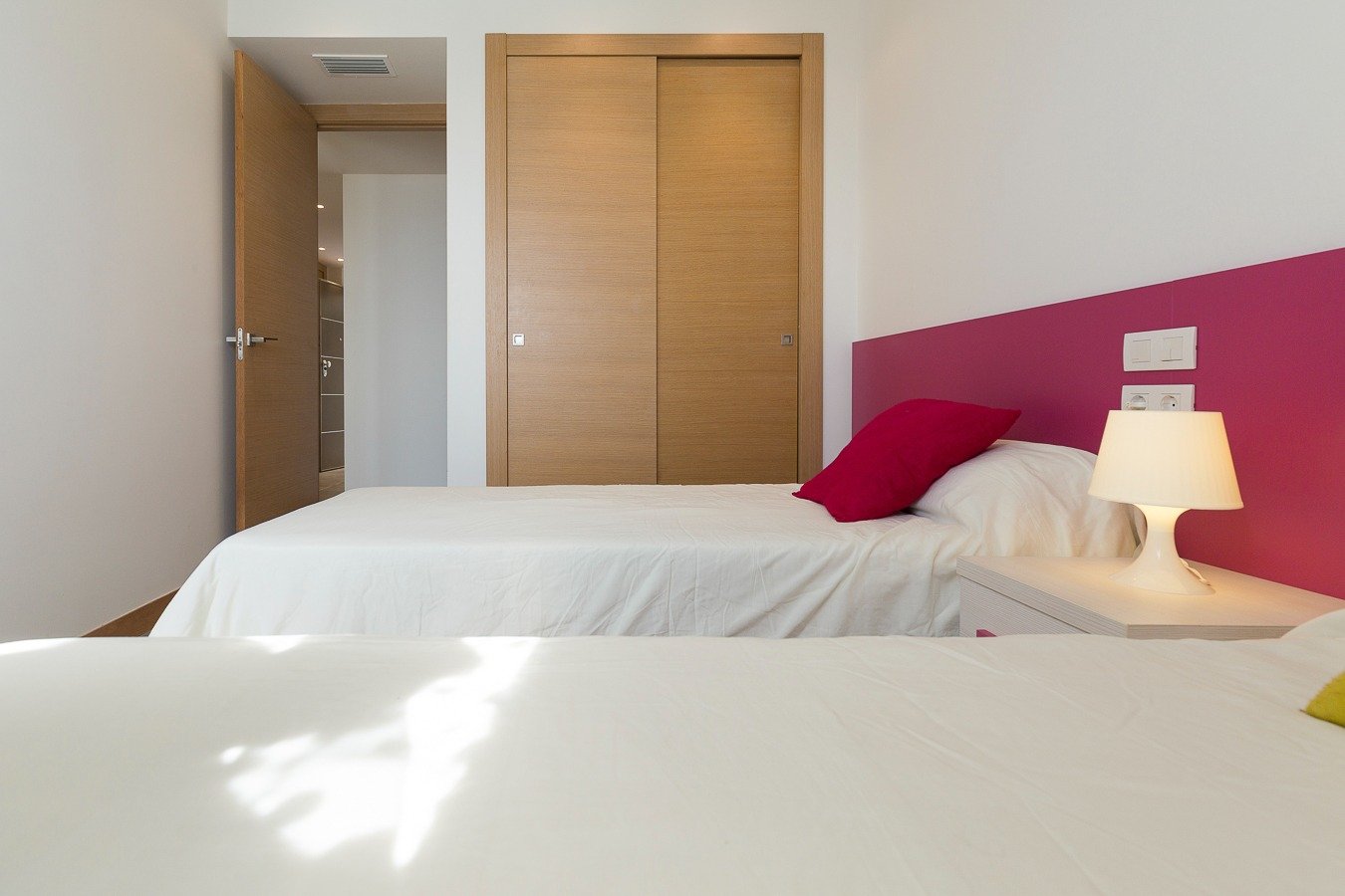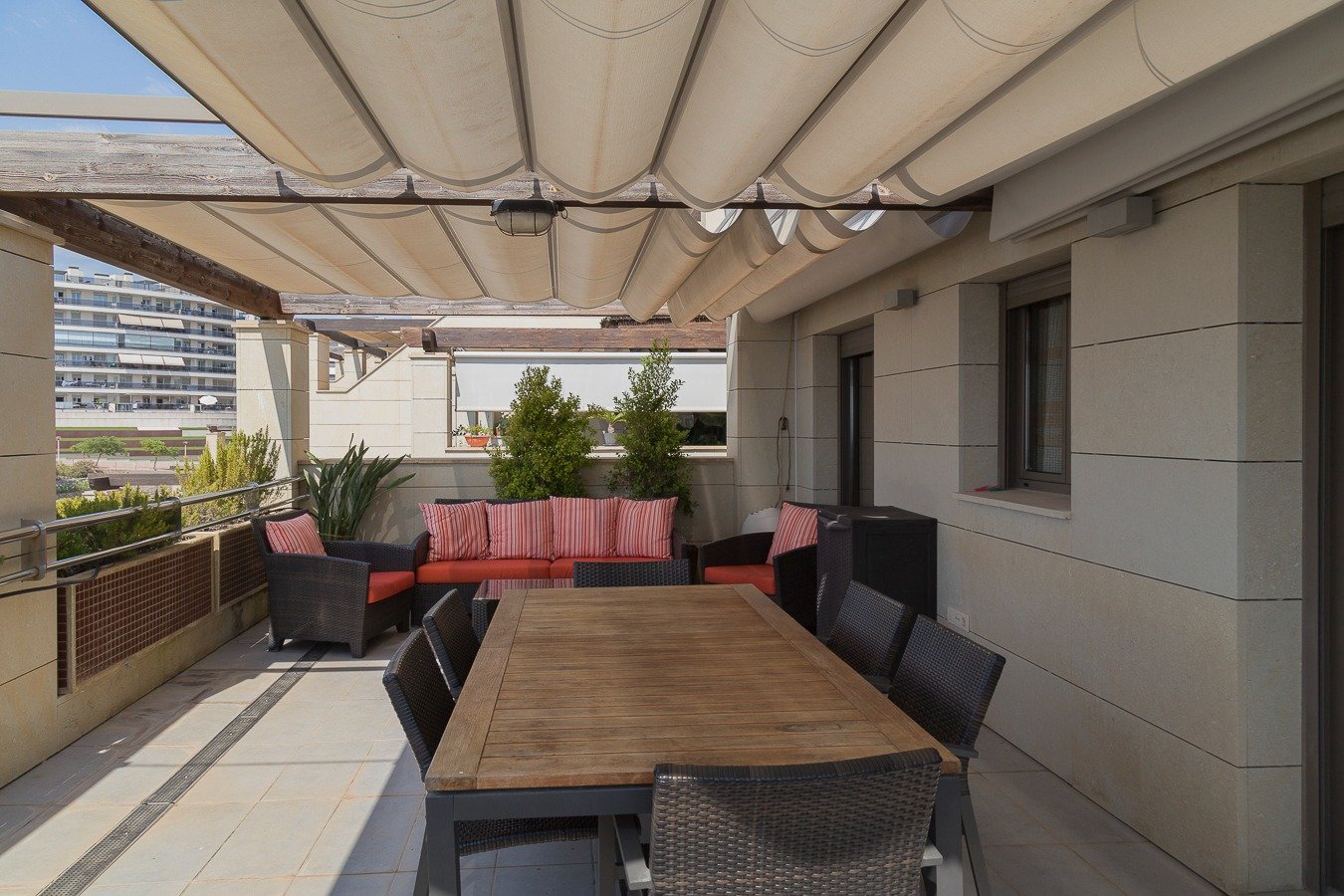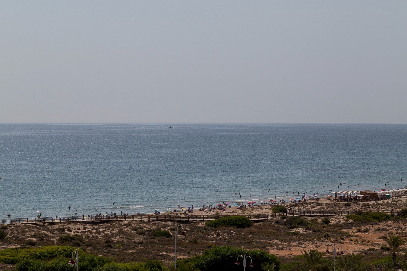 Apartamento esquina (frontal este y lateral sur) con vistas panorámicas de 270º. Desde su terraza de 33 m2. se pueden divisar desde Cabo de las Huertas, y Alicante ciudad, pasando por toda la playa de Arenales del Sol, Isla de Tabarca y hasta el Cabo de Santa Pola. . . Su orientación lo hace excelente para disfrutarlo en cualquier época del año, requiriendo muy poco uso de energía para su climatización: En verano las brisas predominantes discurren por el interior de la vivienda a través de sus múltiples ventanales y en invierno su posición al sur recibe gran cantidad de sol en casi todas sus piezas.. . Calidades reseñables:. . – Fachadas autoventiladas realizadas en piedra «Bateig», un material aislante y totalmente natural que se extrae de canteras situadas en la comarca.. – Pavimentos de gres porcelánico.. – Ventanales de acceso de terraza con sistema oscilobatiente-deslizable.. – Sistema de aspiración centralizada.. – AACC con conductos por toda la vivienda.. – Puerta principal acorazada.. – Paredes en acabado liso.. – Terraza con toldos correderos de sistema de palillería, tejido realizado en material «Screen». . Incluye 2 plazas de garaje subterráneas de generosas dimensiones + 1 trastero de 5 m2 (privativos).. . Balcón de Arenales Privilege es una de las escasas urbanizaciones en primera línea de la zona que cuentan con acceso al paseo marítimo sin barreras arquitectónicas ni escaleras. Tiene amplias zonas de esparcimiento, piscina desbordante con vistas panorámicas, jardines y accesos a la urbanización desde varios puntos.. . Otros datos de interés:. – Superficie catastral: 116 m2.. – Superficie útil vivienda: 70,50 m2.. – Superficie útil terraza: 33 m2.. – Total superficie útil (vivienda + terraza): 103,50 m2.. – 4 fincas registrales y catastrales (vivienda + 2 plazas de garaje + trastero). . * Gastos de Notaría, Registro de la Propiedad e impuestos (ITPAJD, IVA) no incluidos en el precio..