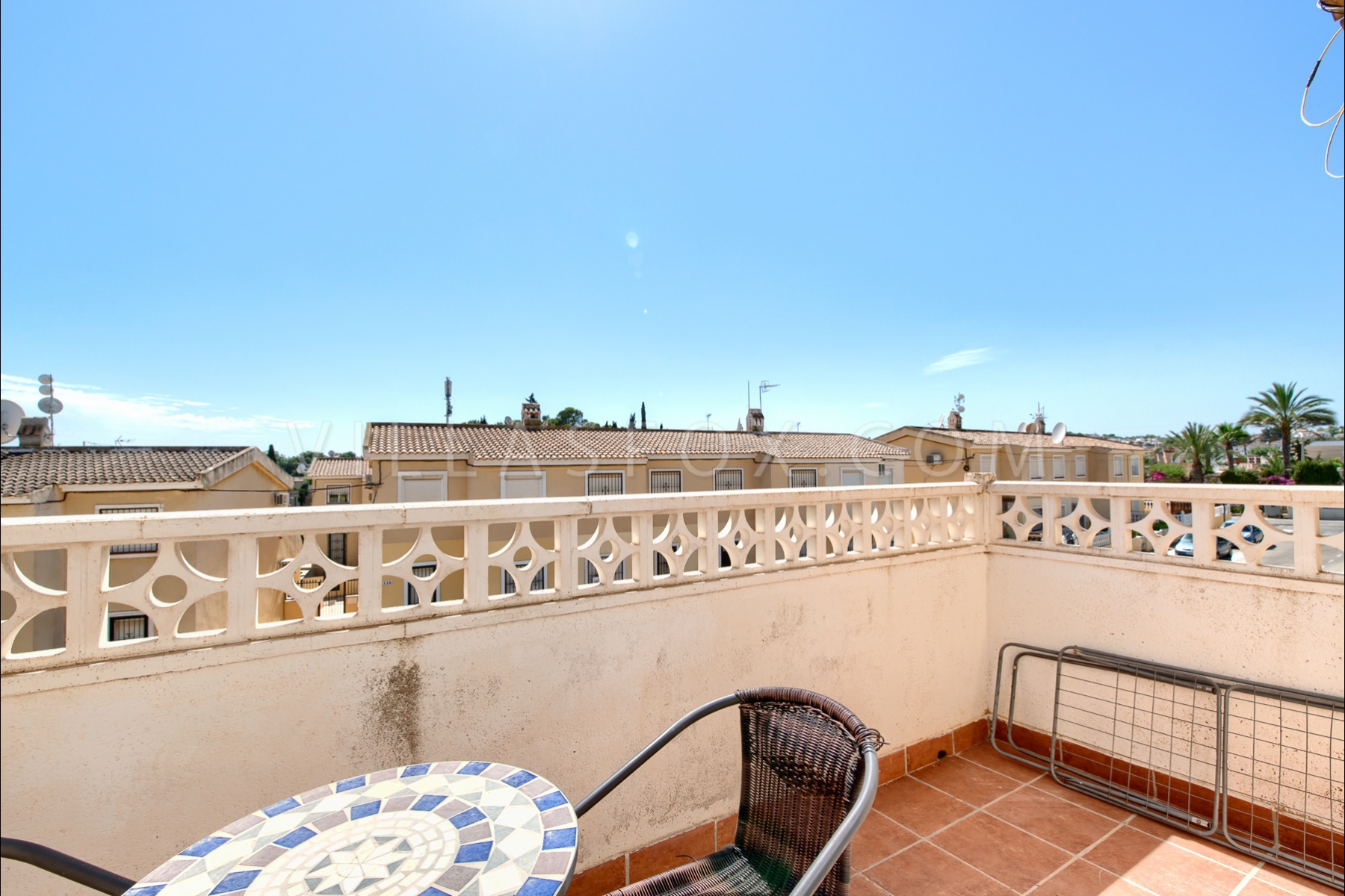 (Villas Fox Ref: 1179) Constructed floor size = 40.00 m2 Plot size = 48.00 m2 Year of construction = 1999 (Villas Fox Ref: 1179) APARTAMENTO PLANTA ALTA DE 1 DORMITORIO, LOMAS DEL GOLF. Superficie construida = 40,00 m2 Superficie parcela = 48,00 m2 Año de construcción = 1999 * A 10 minutos en coche de la playa * 2 aeropuertos a 45 minutos en coche * Jardines comunitarios * Listado directo con Villas Fox * Agua caliente eléctrica * Exclusivo de Villas Fox * Primera piso * Amueblado * Galeria (lavadero) * Cerca de bares y restaurantes * Cerca de campos de golf * Sin ascensor * Cocina americana * Orientación sur * Piscina (comunitaria) * Terraza Apartamento en planta alta con baño en Lomas del Golf (en San Miguel de Salinas pero justo en el límite con Orihuela Costa) con acceso a varias piscinas comunitarias, y no lejos de la famosa Plaza de Villamartín. Recientemente se ha modernizado la cocina y se ha ampliado la barra de desayuno. Hay un cuarto de servicio (lavadero) adyacente al área de la cocina, y las puertas del patio conducen desde el salón a un balcón terraza con agradables vistas. Se accede a la propiedad a través de una escalera exterior con aproximadamente 24 escalones y no hay ascensor. El apartamento en sí mide 40 m2 (incluyendo el área de servicio de 3 m2), más la terraza mide 48 m2, dando un área total interior y exterior de 48 m2. El edificio fue construido en 1999. Para cualquiera que busque una casa de vacaciones asequible con acceso a piscinas comunitarias y no lejos de muchos servicios y la playa, ¡esta podría ser ideal para usted! Presentado exclusivamente por Villas Fox, envíenos un mensaje directamente si está interesado en esta oportunidad y lo guiaremos a través del proceso de adquisición. Tenga en cuenta que los precios que se muestran no incluyen el impuesto a las ventas (en Alicante 10% u 8 % para compradores españoles menores de 35 años) y gastos de notario, registro y procurador (normalmente 2.500-4.000 euros). Si la propiedad es de obra nueva, se paga un impuesto AJD adicional del 1,5%. Toda la información proporcionada es solo una guía. Las propiedades se pueden reservar mediante el pago de un depósito de reserva y la firma de un contrato de reserva. Cualquier mueble o electrodomésticos incluidos en la venta se venden como artículos de segunda mano sin garantía salvo que se indique lo contrario. Los precios INCLUYEN los honorarios del agente, es decir, el comprador no paga honorarios de agencia inmobiliaria cuando compra con Villas Fox. Somos miembros orgullosos de APIAL (Asociación de Agentes de la Propiedad Inmobiliaria y Agentes Inmobiliarios de la Provincia de Alicante), que es un registro oficial de agentes inmobiliarios profesionales que están debidamente asegurados, calificados, experimentados y completamente legales, para su protección.