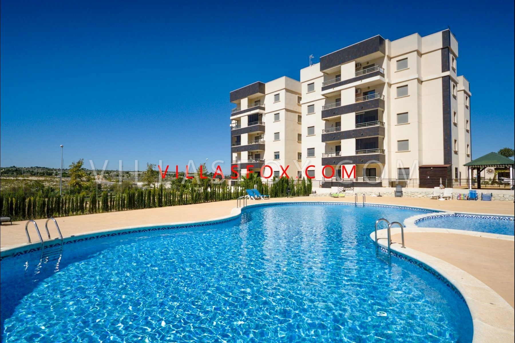 (Villas Fox Ref: 28651) Constructed floor size = 67.00 m2 Year of construction = 2008 Apartamento de 2 habitaciones, Res. Angelina, San Miguel de Salinas. ¡Un hermoso apartamento ubicado en el segundo piso de un edificio moderno con ascensor y piscina comunitaria en el corazón de una popular ciudad española! A pocos pasos de supermercados, bares y restaurantes. Dos habitaciones dobles, baño familiar con bañera, ducha y calefactor de pared. Cocina americana totalmente equipada, salón-comedor y balcón con vistas a la piscina y hacia las montañas de Orihuela. El dormitorio principal también tiene excelentes vistas. Solárium comunitario donde se puede tender la ropa a secar. Este es un apartamento que ha sido muy bien mantenido, está en excelentes condiciones y listo para entrar a vivir. Tenemos las llaves, así que llámanos hoy para concertar una visita.