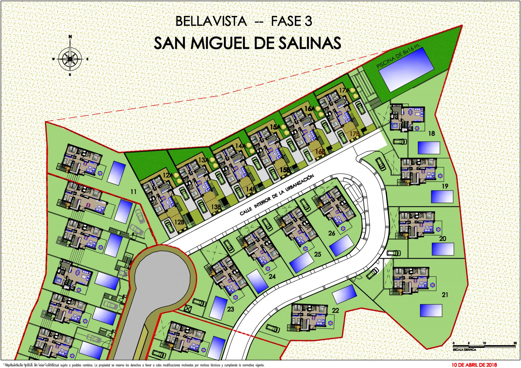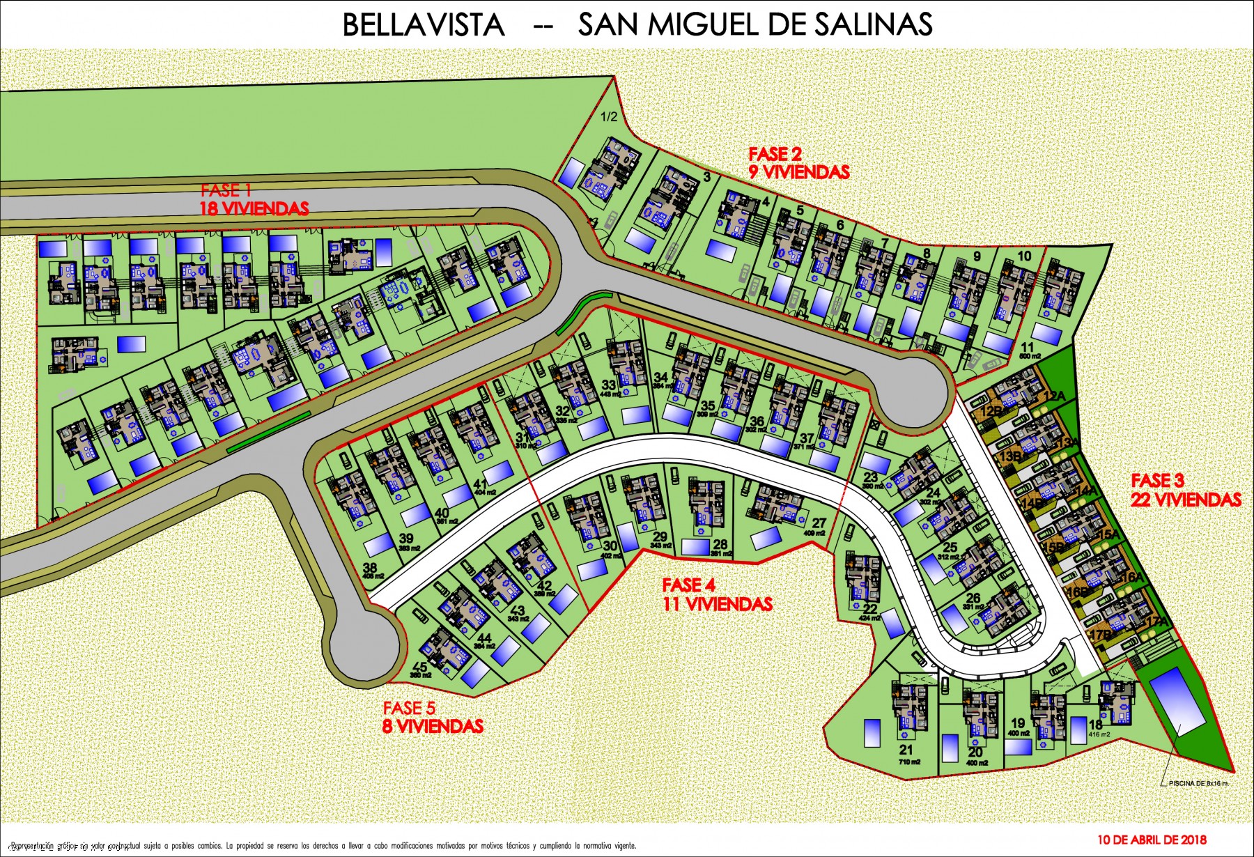 Bellavista occupies a beautiful setting in an area with stunning panoramic views. The greenest, prettiest and quietest part of San Miguel de Salinas. Just seven kilometres from the beaches of Orihuela, with views of the salt flats, surrounded by golf courses and shopping centres, Bellavista is a large, four-phase residential project. We build detached villas with private swimming pools and spacious, ground and first floor terraced properties with landscaped areas and community pools. Villa buyers can pick a plot and choose the property design that best adapts to their requirements.