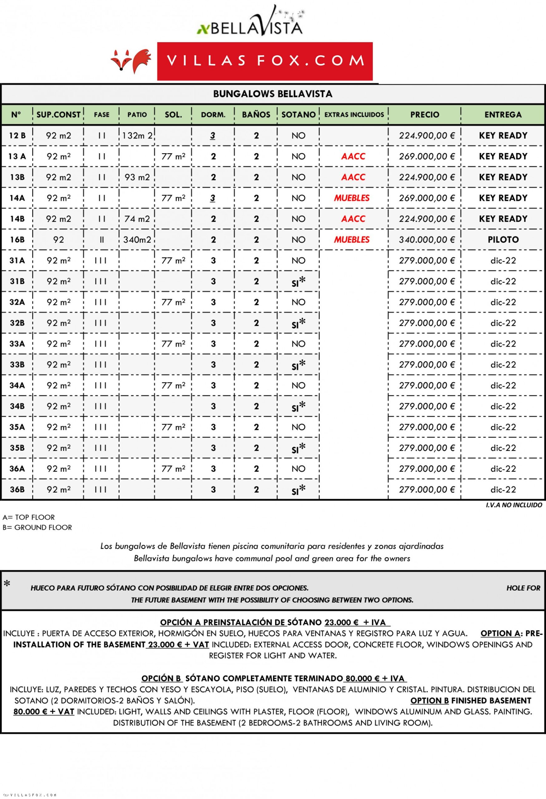 (Villas Fox Ref: 28664) Constructed floor size = 92.00 m2 Year of construction = 2021 NEWS – 30/03/2021 – THE KEY-READY GROUND-FLOOR PROPERTIES ARE NOW ONLY 199,000 ? !