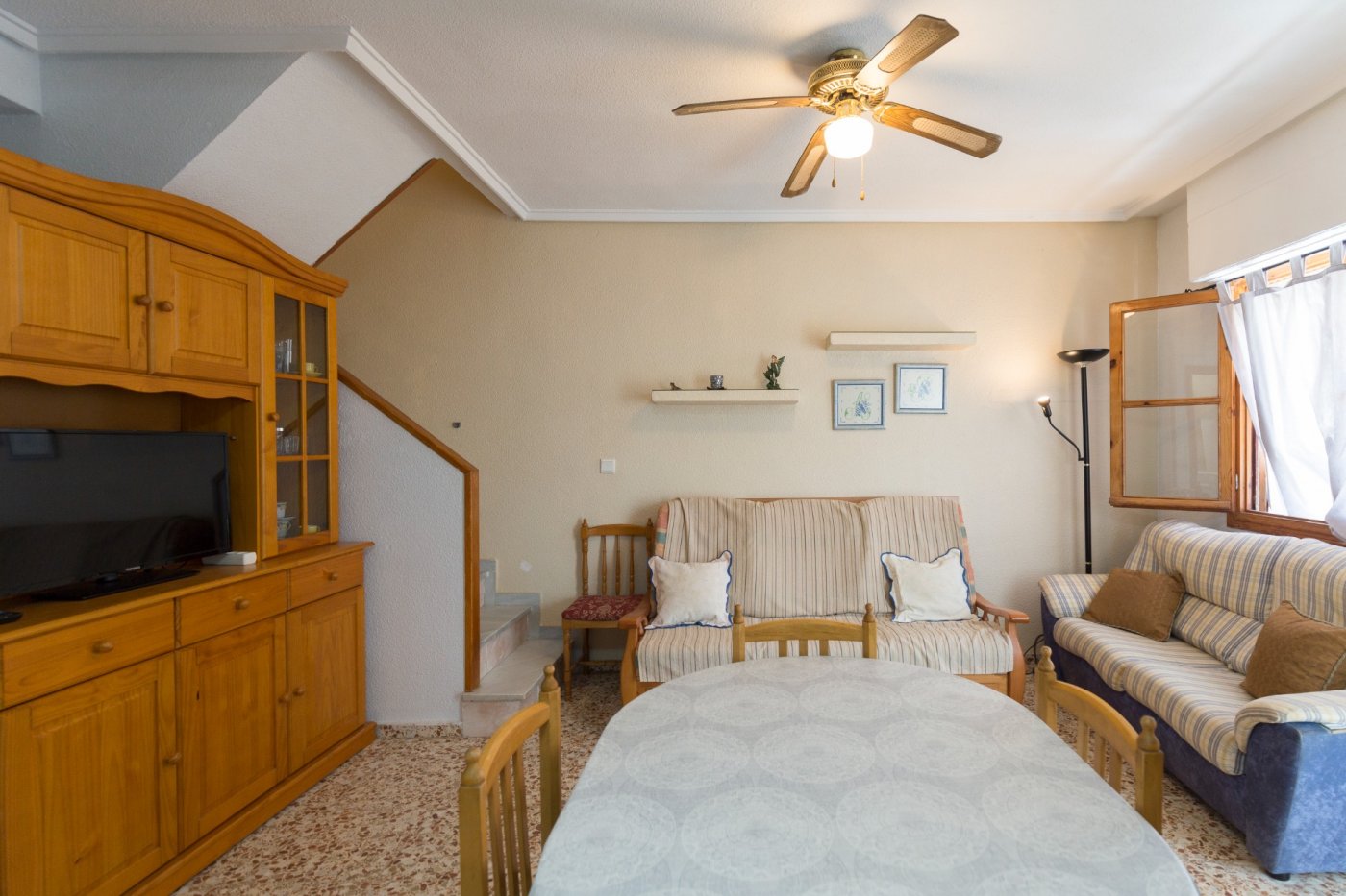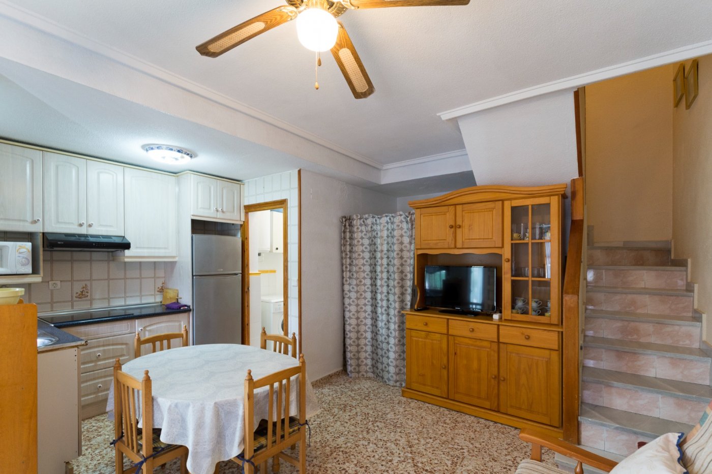 Esta vivienda se encuentra ubicada en una zona estupenda, ya que está cerca de la zona céntrica (con todos sus servicios), y a su vez cuenta con la tranquilidad de la Gran Playa.. . Su distribución en dos plantas es ideal; un baño completo con bañera y los dos dormitorios dobles (con armario empotrado), uno de ellos con balcón, en la planta superior .En la planta principal un espacio diáfano y luminoso con su cocina, salón-comedor y un aseo. . . Por último, cuenta con una amplia terraza con orientación este en la cual hay una barbacoa y trastero, que es ideal para disfrutar de las tardes de verano de nuestra querida Santa Pola.. . Los gastos de comunidad son mínimos, solo 25 euros al año!!. . La Gran Playa de Santa Pola es apreciada por familias por sus tranquilas aguas de muy poco calado, ideales para niños y personas mayores. Y las cercanas lagunas de las Salinas son punto de reunión para amantes de la naturaleza y la fotografía al ser una zona idónea para el refugio y parada de diversas especies de aves migratorias, con espectaculares puestas de sol.. . * Gastos de Notaría, Registro de la Propiedad e impuestos (ITPAJD, IVA) no incluidos en el precio.