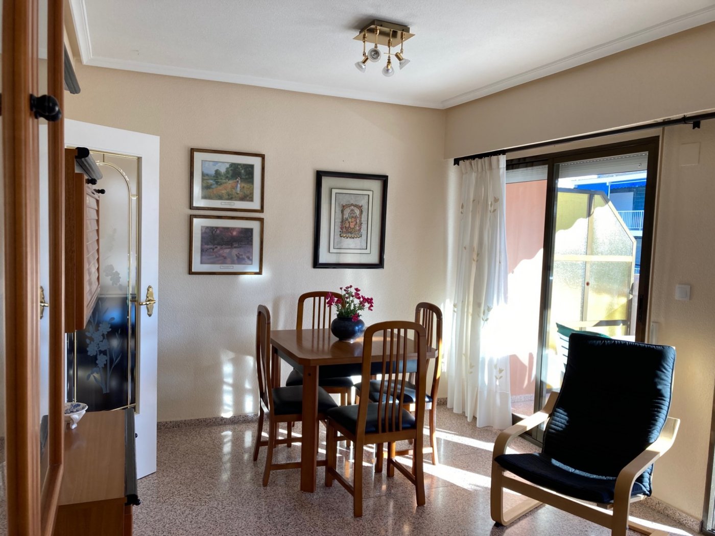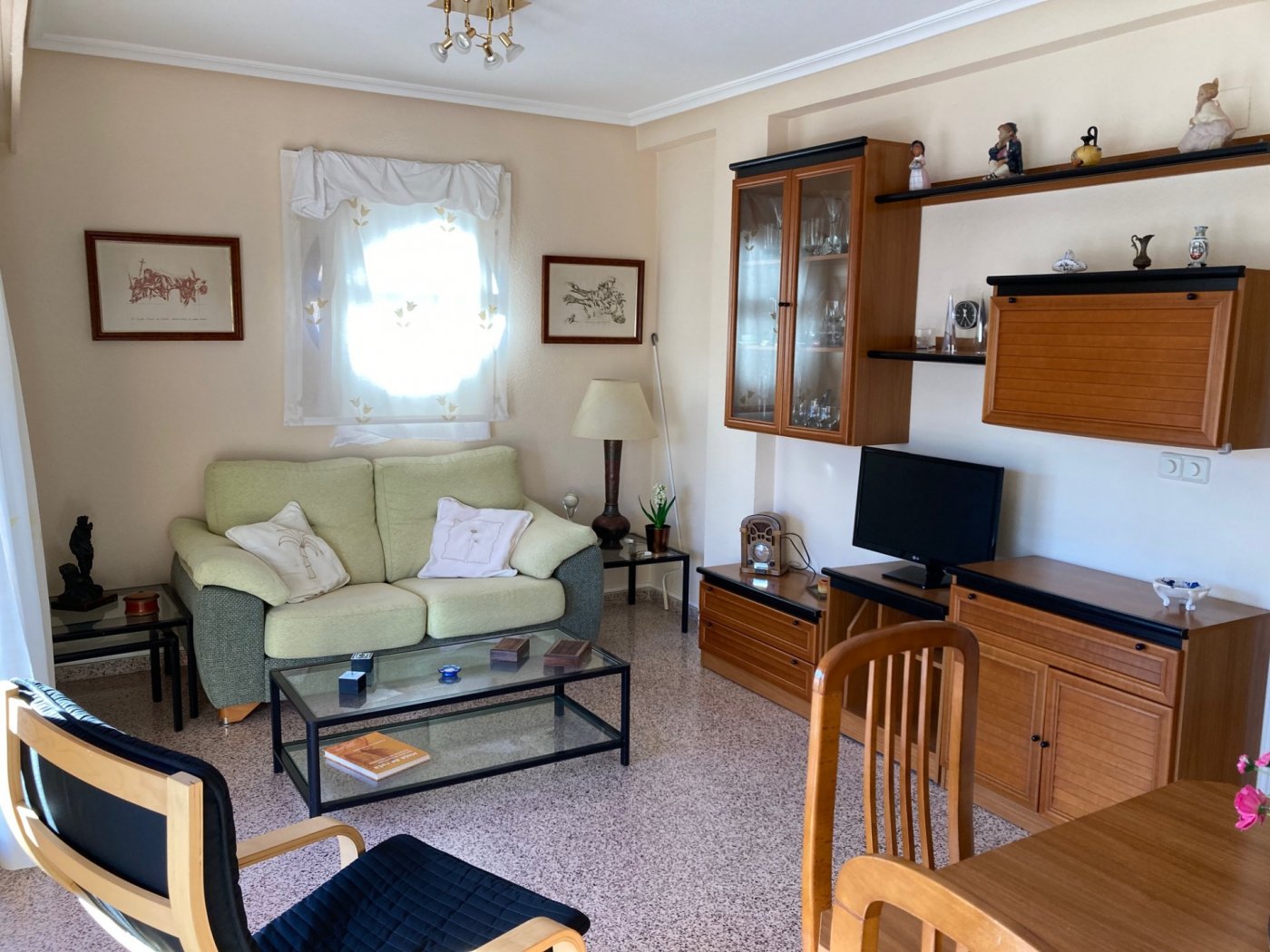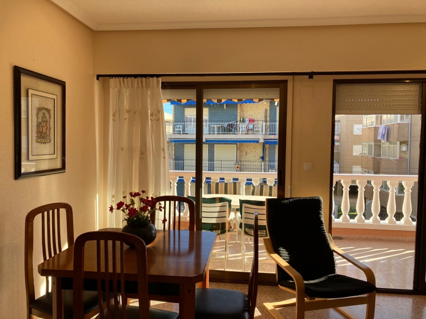 Excepcional oportunidad a escasos dos minutos de la Gran Playa (140 mts), en la calle Monovar. Con una ubicación, estado de conservación y orientación inmejorables. Zona tranquila pero próxima al casco urbano con todo tipo de servicios próximos a 500 mts.. . Dispone de 3 dormitorios, dos de los dormitorios de matrimonio tienen armario empotrado y el principal tiene un pequeño balcón. El baño principal ha sido reformado recientemente con plato de ducha y además cuenta con un aseo. La cocina esta equipada y es independiente con galería. Salón con acceso a amplia terraza con espacio suficiente para diez personas, además de toldos y lo más importante: Vistas despejadas y laterales al Mar.. Se vende totalmente amueblado y con electrodomésticos. En perfecto estado de conservación para directamente entrar a vivir y disfrutar de nuestro clima exclusivo mediterráneo.. . El apartamento hace esquina al Este, Sur y Oeste, por lo que es totalmente exterior, muy luminoso y ventilado. Ideal para cualquier temporada del año, ya sea para vacaciones o para residir todo el año.. . Edificio muy distinto a la gran mayoría de los que podemos ver por esta zona de Gran Playa, exquisito y elegante. Construido en 1990 con buen mantenimiento de comunidad y vecinos. Plazas de garaje en superficie, duchas y solarium comunitario. Y además de un amplio trastero privado.. . Otros características: Puertas y ventanas exteriores de aluminio, carpintería interior lacada blanco, suelos de terrazo y gres en baños, puerta blindada, recién pintado, balaustradas en terrazas y balcones, bancada granito en cocina, termo eléctrico, galería acristalada, instalación eléctrica en perfectas condiciones.. . * Gastos de Notaría, Registro de la Propiedad e impuestos (ITPAJD, IVA) no incluidos en el precio.. . .