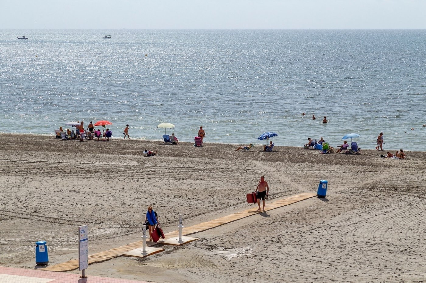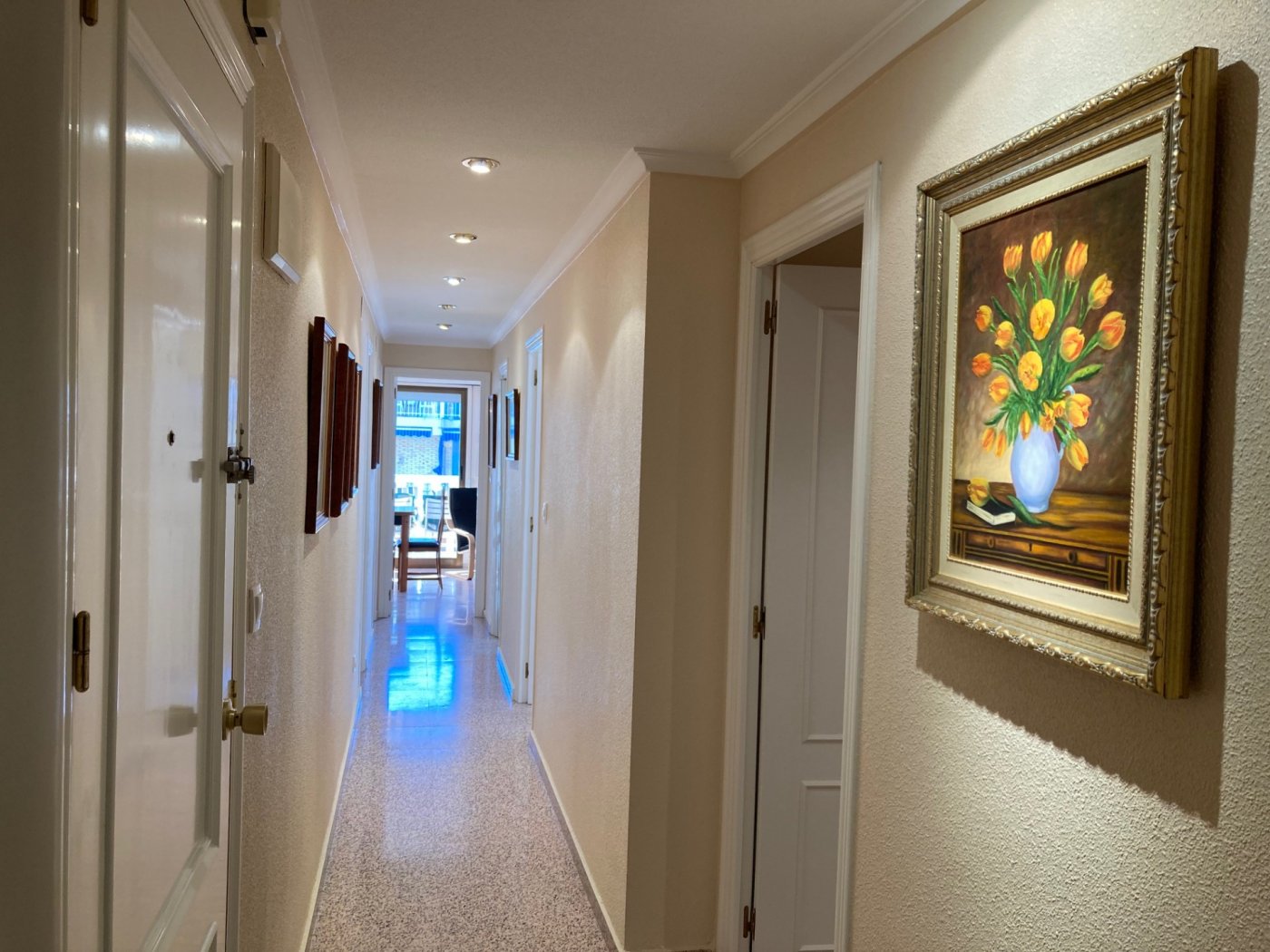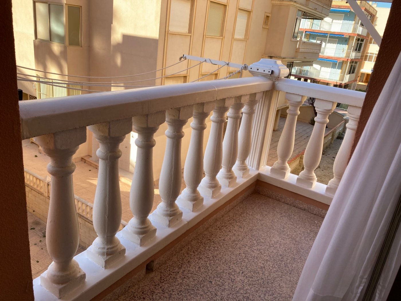 Excepcional oportunidad a escasos dos minutos de la Gran Playa (140 mts), en la calle Monovar. Con una ubicación, estado de conservación y orientación inmejorables. Zona tranquila pero próxima al casco urbano con todo tipo de servicios próximos a 500 mts.. . Dispone de 3 dormitorios, dos de los dormitorios de matrimonio tienen armario empotrado y el principal tiene un pequeño balcón. El baño principal ha sido reformado recientemente con plato de ducha y además cuenta con un aseo. La cocina esta equipada y es independiente con galería. Salón con acceso a amplia terraza con espacio suficiente para diez personas, además de toldos y lo más importante: Vistas despejadas y laterales al Mar.. Se vende totalmente amueblado y con electrodomésticos. En perfecto estado de conservación para directamente entrar a vivir y disfrutar de nuestro clima exclusivo mediterráneo.. . El apartamento hace esquina al Este, Sur y Oeste, por lo que es totalmente exterior, muy luminoso y ventilado. Ideal para cualquier temporada del año, ya sea para vacaciones o para residir todo el año.. . Edificio muy distinto a la gran mayoría de los que podemos ver por esta zona de Gran Playa, exquisito y elegante. Construido en 1990 con buen mantenimiento de comunidad y vecinos. Plazas de garaje en superficie, duchas y solarium comunitario. Y además de un amplio trastero privado.. . Otros características: Puertas y ventanas exteriores de aluminio, carpintería interior lacada blanco, suelos de terrazo y gres en baños, puerta blindada, recién pintado, balaustradas en terrazas y balcones, bancada granito en cocina, termo eléctrico, galería acristalada, instalación eléctrica en perfectas condiciones.. . * Gastos de Notaría, Registro de la Propiedad e impuestos (ITPAJD, IVA) no incluidos en el precio.. . .