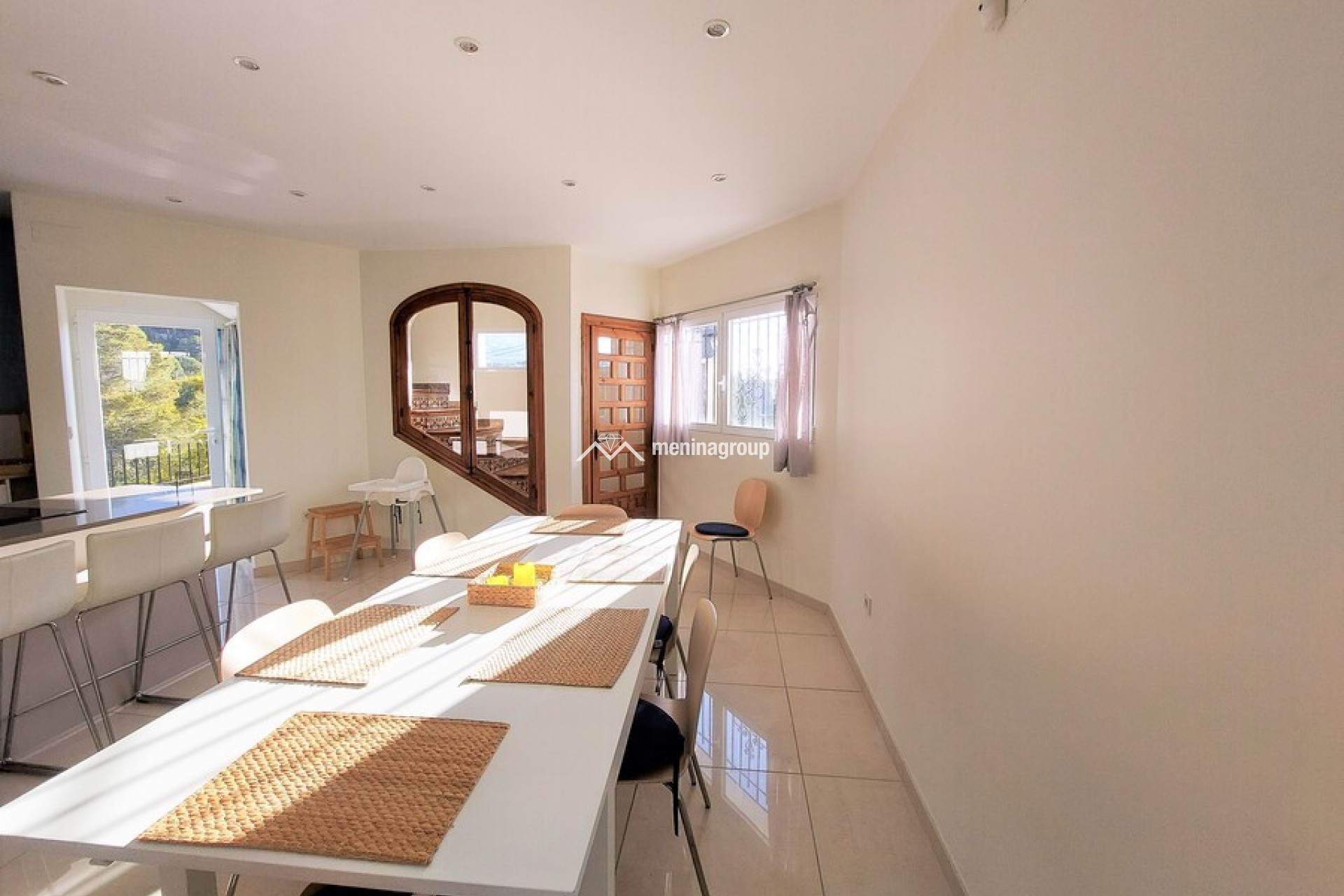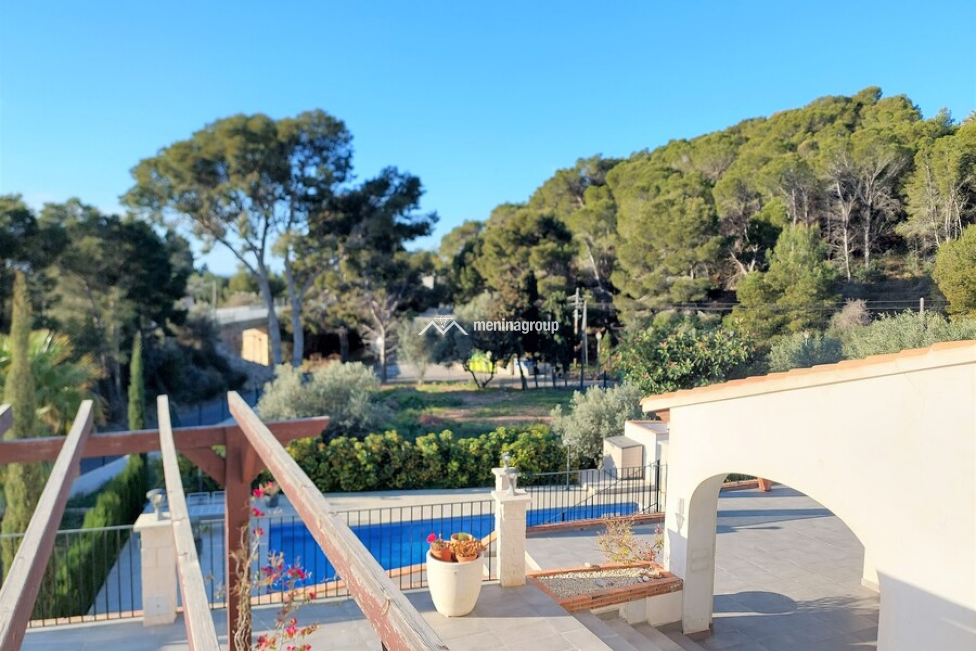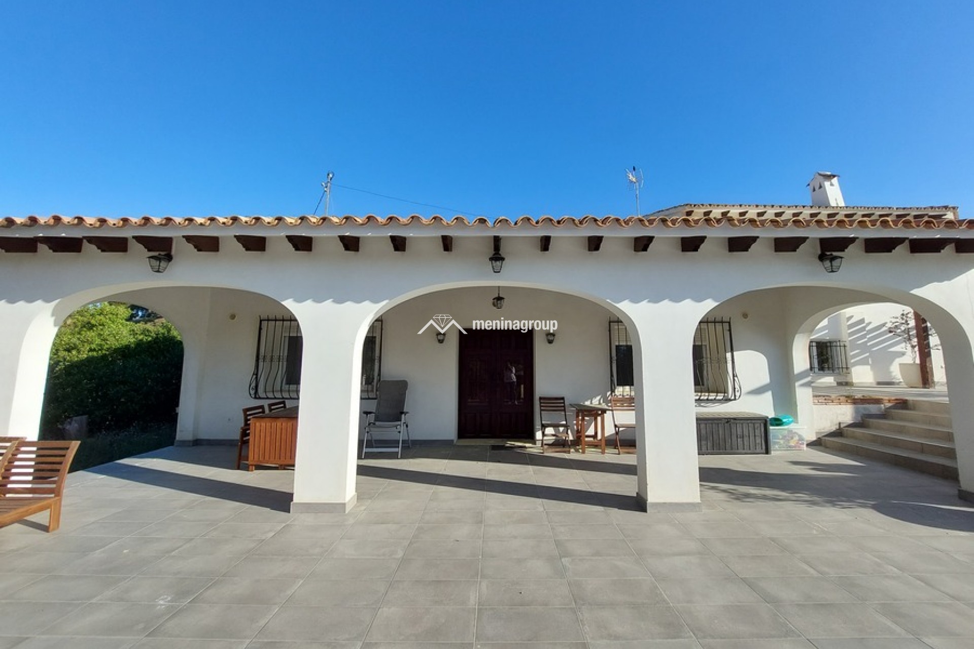 Bonita casa de estilo mediterráneo situada en una amplia parcela y a solo cinco minutos andando de la playa.