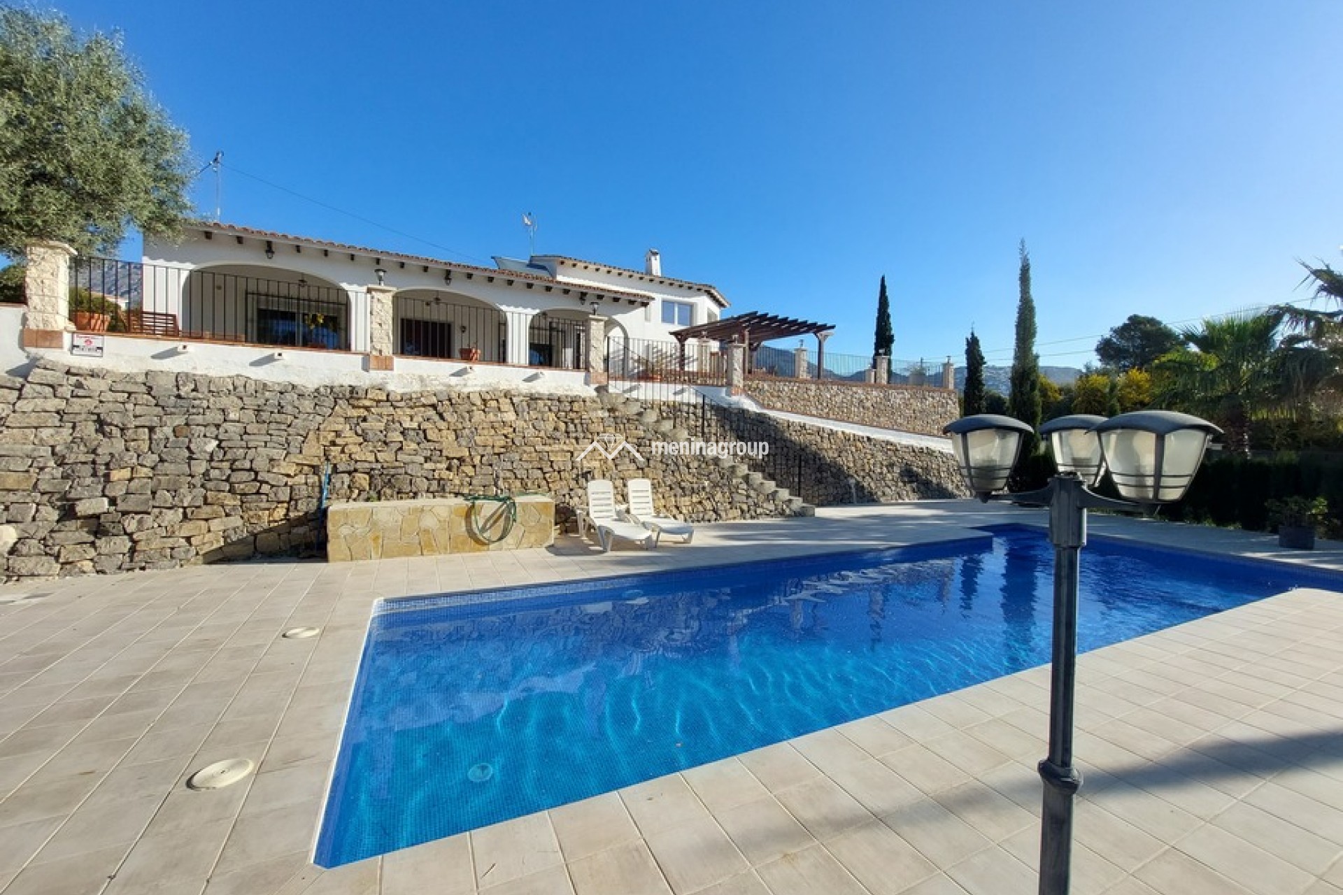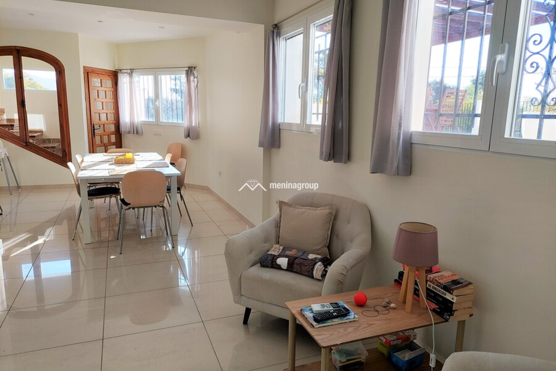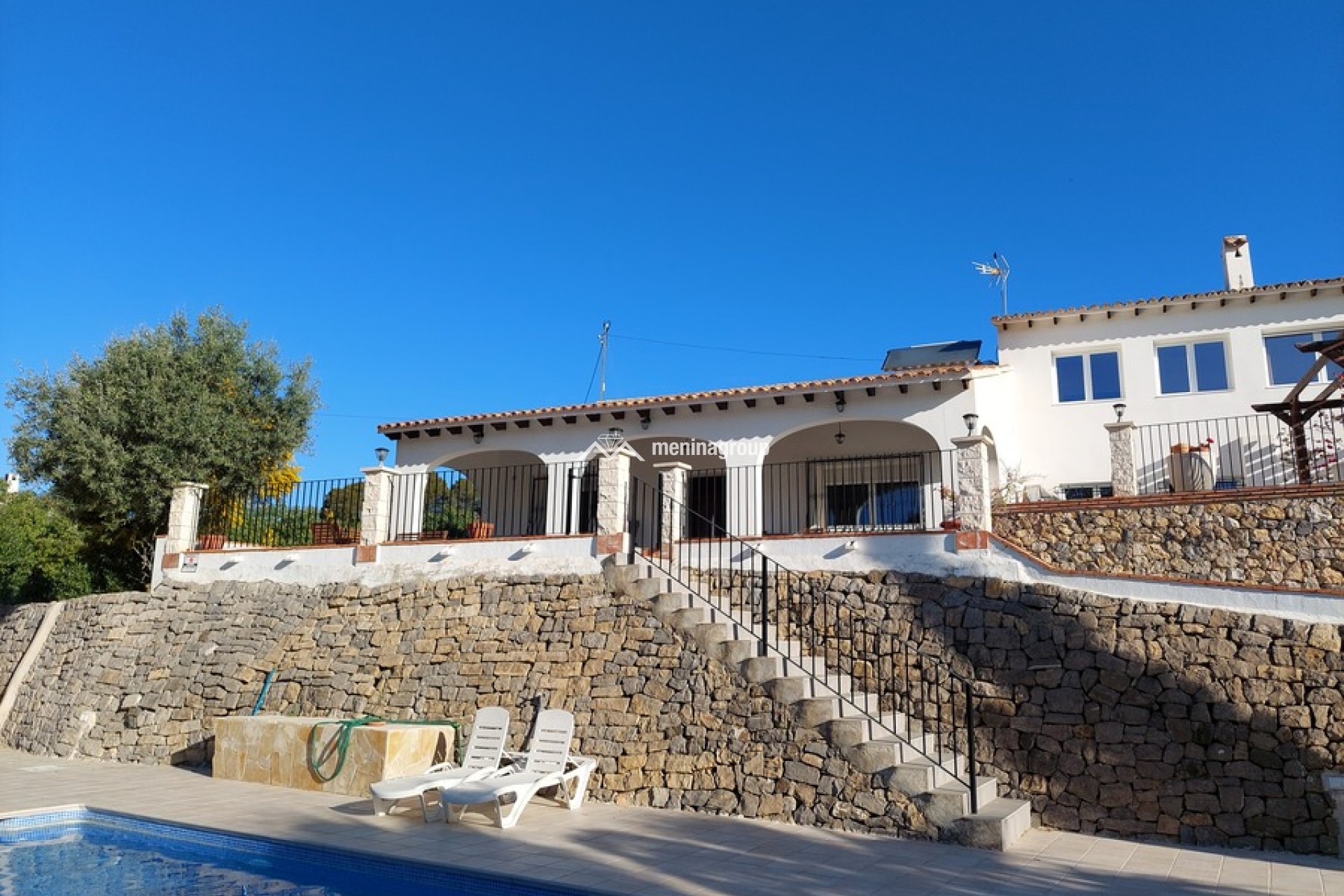 Bonita casa de estilo mediterráneo situada en una amplia parcela y a solo cinco minutos andando de la playa.