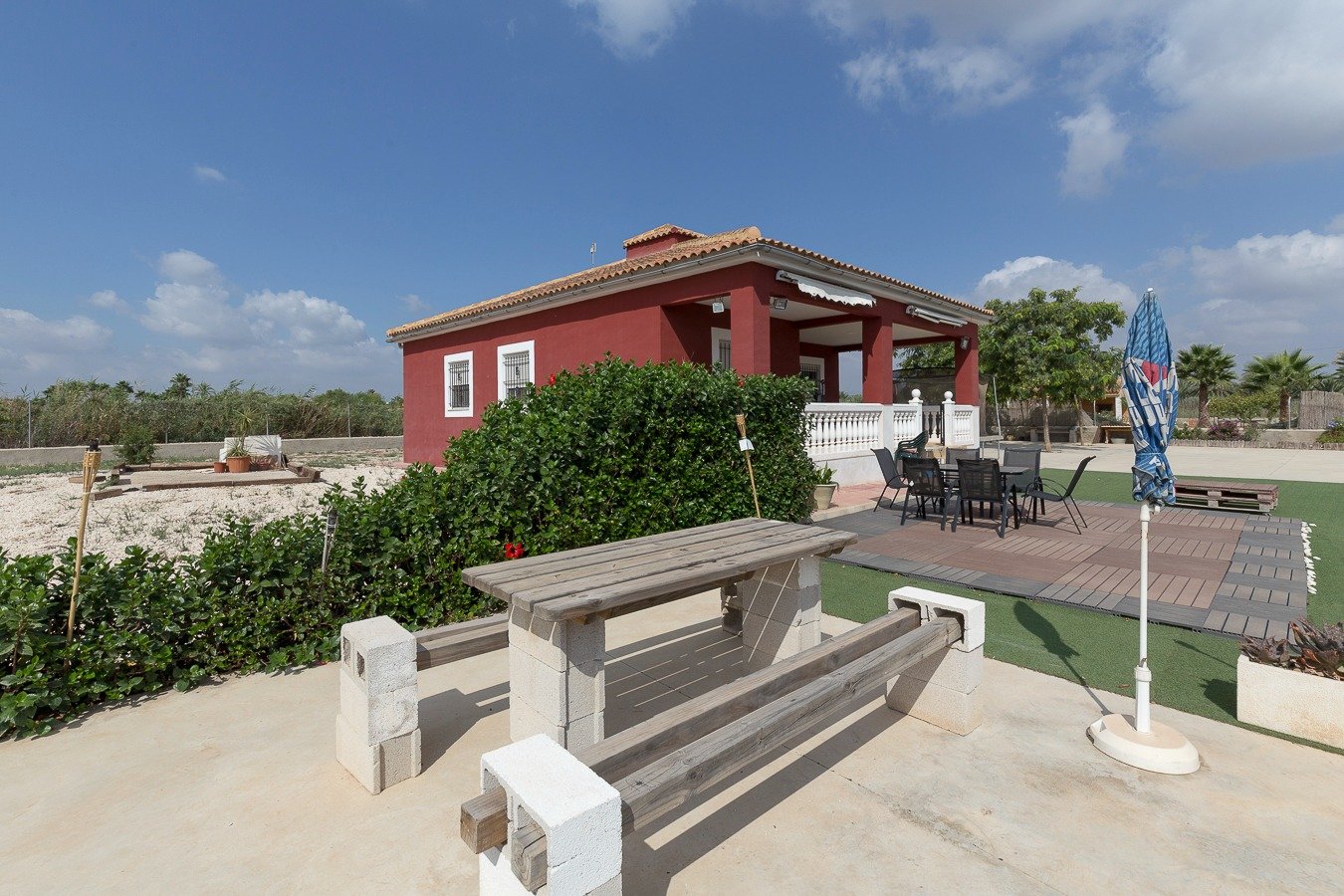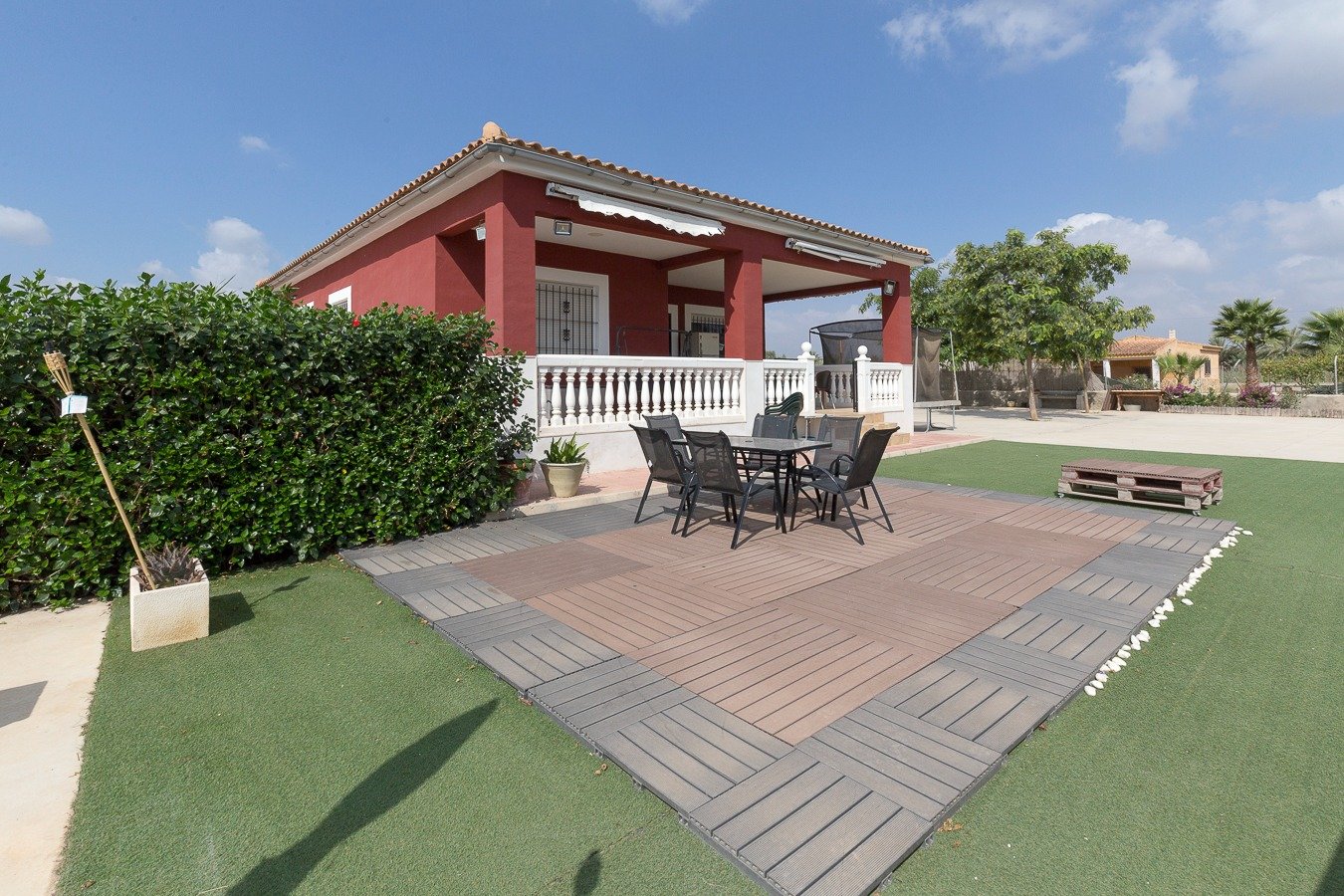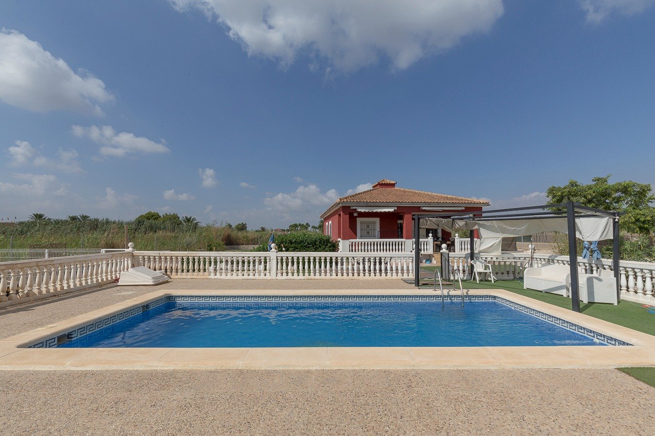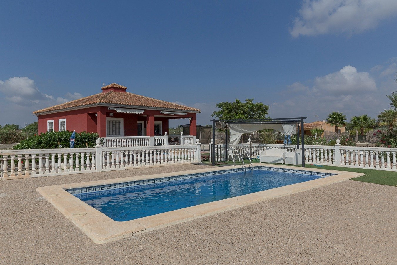 No deje pasar la oportunidad de vivir en el campo, gran oportunidad! . . Venta de Chalet independiente a escasos minutos de Elche y la playa de la Marina (El Pinet).. . Vivienda de planta baja de 130 m2, se encuentra construida sobre una parcela de 1.700 m2. vecinos alrededor, camino asfaltado, excelente ubicación, la vivienda consta de 3 dormitorios , 1 baño muy amplio, salón comedor luminoso, vivienda sin pasillos y con cocina abierta, funcional y práctica. Porche con vistas a la piscina en la que podrá disfrutar de veladas estupendas con amigos y familiares. . Completamente amueblada y con electrodomésticos.. . El chalet se encuentra ubicado a tan sólo 10 min de La Hoya – Elche, o bien a 5 min de La Marina donde encontrará todo tipo de servicios.. . * Gastos de Notaría, Registro de la Propiedad e impuestos (ITPAJD, IVA) no incluidos en el precio.