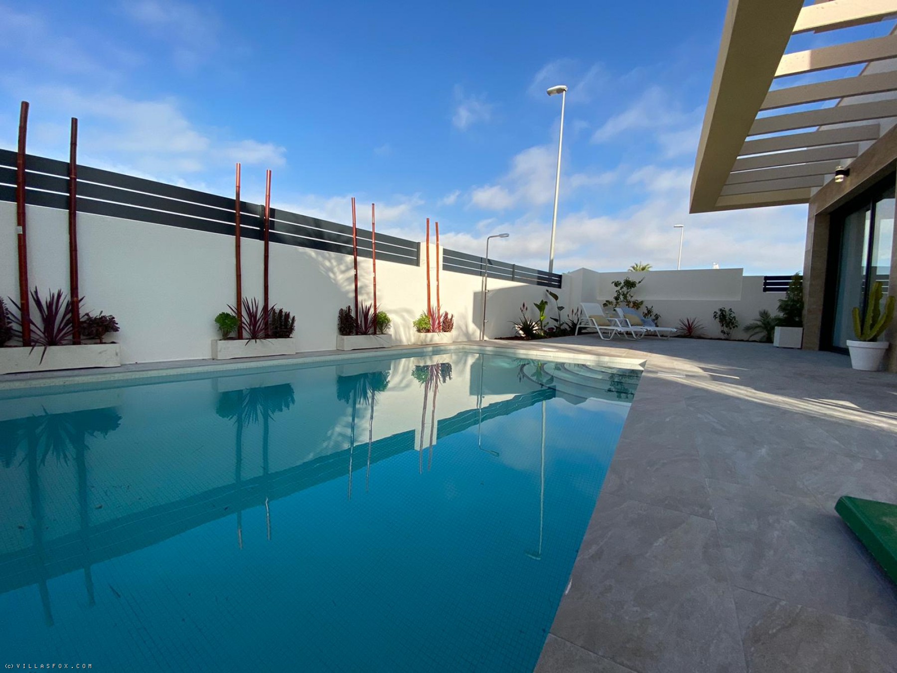 (Villas Fox Ref: 28657) Constructed floor size = 112.00 m2 Plot size = 201.00 m2 Year of construction = 2020 Magnífica villa de nueva construcción con fantásticas vistas hacia el lago salado y el Mediterráneo, y muy alta especificación de construcción. Aparcamiento privado, piscina privada. Construido en dos niveles, con 1 dormitorio doble en planta baja y 2 dormitorios dobles en el primer piso. Dos con baños en suite. Gran solárium. A poca distancia en automóvil de golf, playas, pueblos, centros comerciales, etc. Una oportunidad muy emocionante para cualquiera que busque una casa ultramoderna con excelentes vistas y muchas características de lujo.