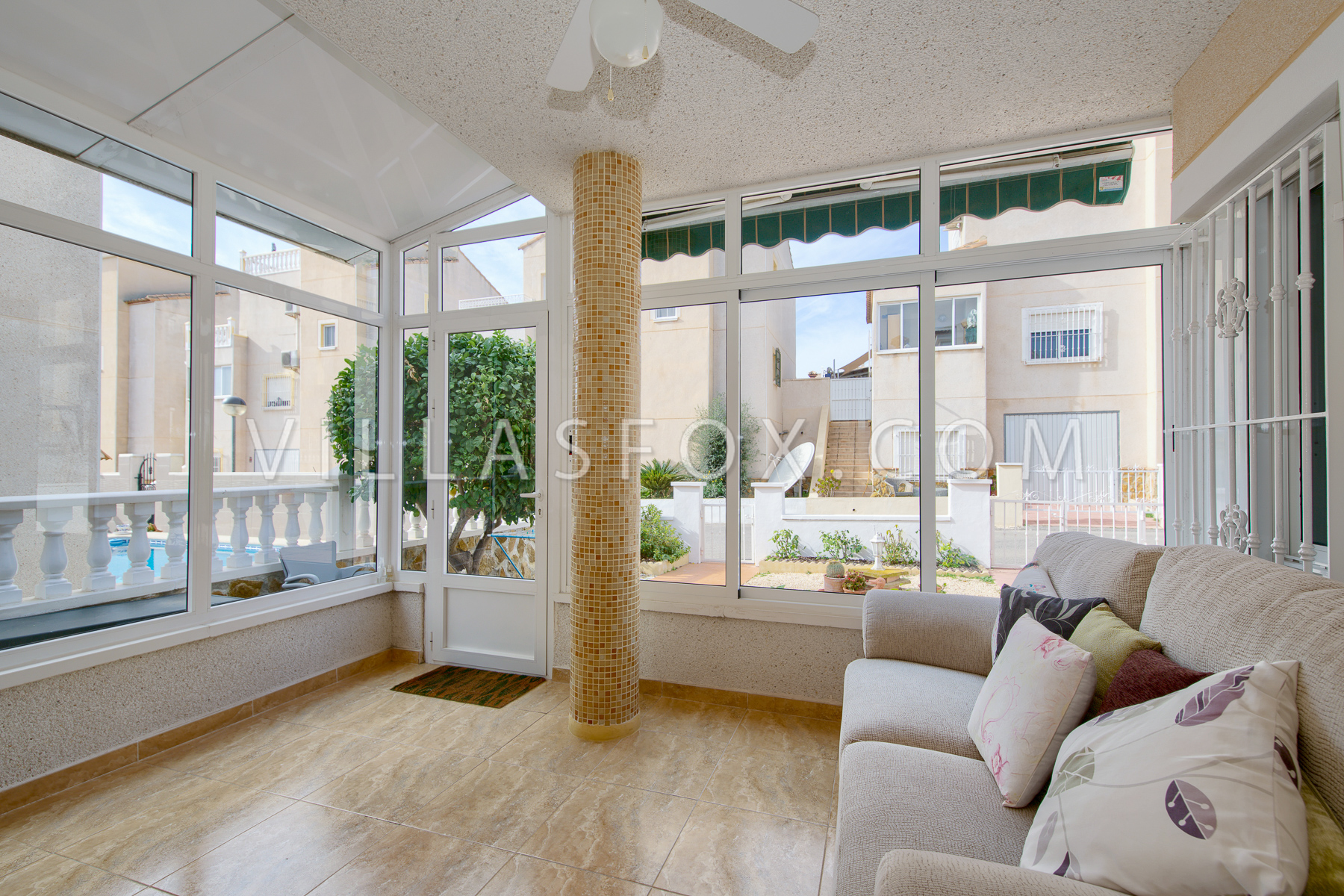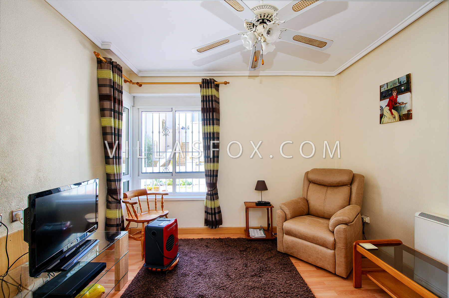 (Villas Fox Ref: 1117) Constructed floor size = 109.00 m2 Plot size = 204.00 m2 Year of construction = 2003 Una maravillosa villa independiente orientada al oeste en dos plantas, con un gran jardín con estacionamiento fuera de la carretera y lo suficientemente grande como para su propia piscina privada. Ubicado en la urbanización Lakeview Mansions (Lo Rufete) entre San Miguel de Salinas y Torremendo, en medio de un paisaje espléndido pero no demasiado lejos para conducir a todas las comodidades que San Miguel y otras ciudades locales tienen para ofrecer. Consta de planta baja con amplio salón acristalado, cocina independiente con galería, salón con chimenea y comedor, baño y dormitorio en planta baja. Una escalera interna conduce al piso superior con baño adicional y 2 dormitorios, uno de los cuales disfruta de puertas que dan al solárium superior. La propiedad, que fue construida en 2003, ha sido muy bien mantenida y se encuentra en una zona tranquila. Aire acondicionado con 5 ventiladores de techo adicionales. Se vende parcialmente amueblado. Antena parabólica. Pisos de madera (parquet) colocados en todas partes. Acumuladores de calor en planta baja. Se ha instalado aislamiento en las paredes exteriores. Mosquiteras en todas las ventanas. No se aplican gastos de comunidad.